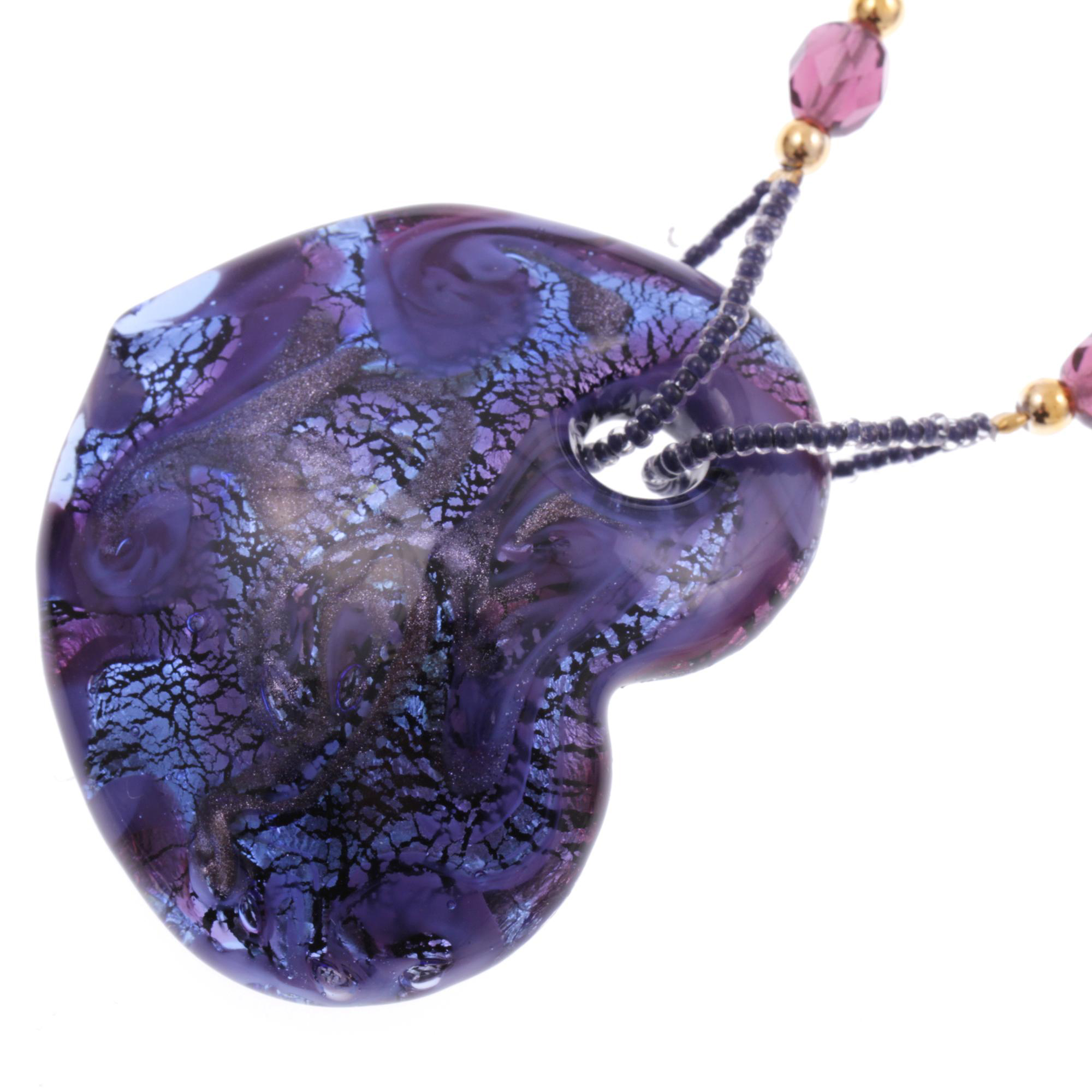 Edles Murano Glas Herz "Capri" Halskette-blau-gold