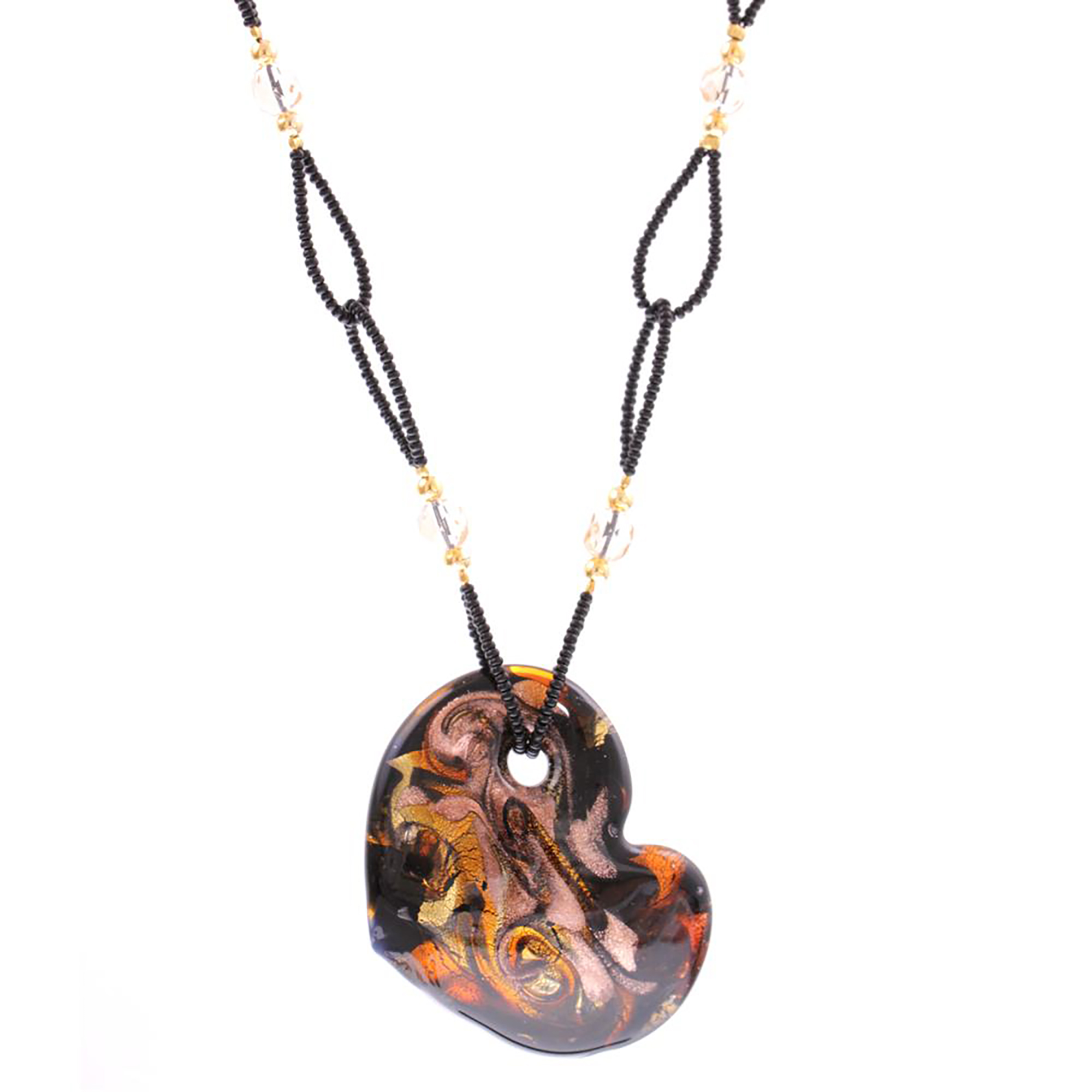 Edles Murano Glas Herz "Capri" Halskette-schwarz-kupfer