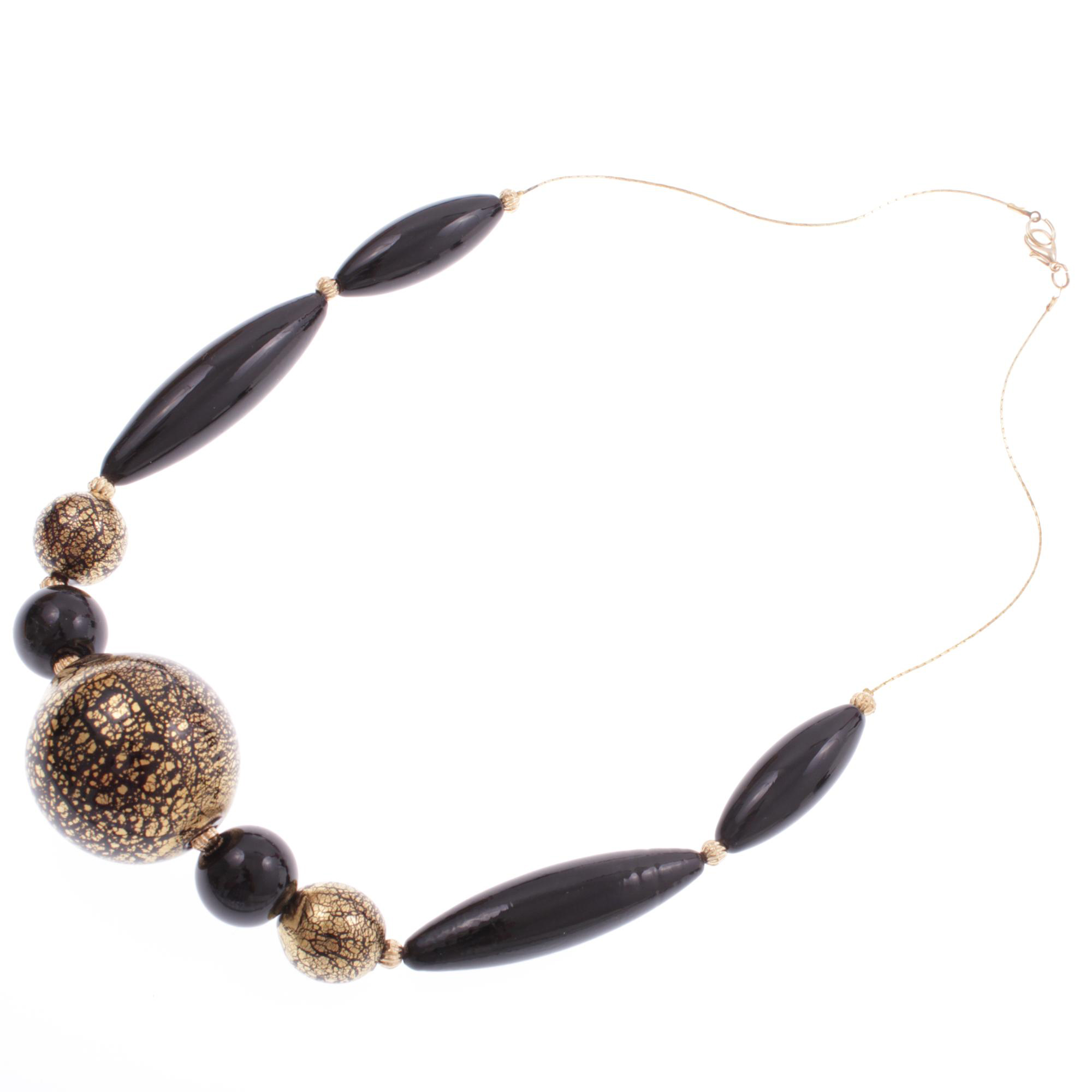 Schmuck Daten: Dieses sensationell schöne Collier wiegt ca. 76 Gramm. Die Länge beträgt ca. 56 cm zzgl einer Verlängerung von 5 cm. Die Zentrale Kugel (mit Blattgold/Blattsilber veredelt) hat einen Durchmesser von ca. 35 mm. Die länglichen Elemente sind einmal 55 und 35 mm lang. Die Öse und die Kette sind je nach Ausführung aufwendig vergoldet bzw. versilbert und selbstverständlich antiallergisch!