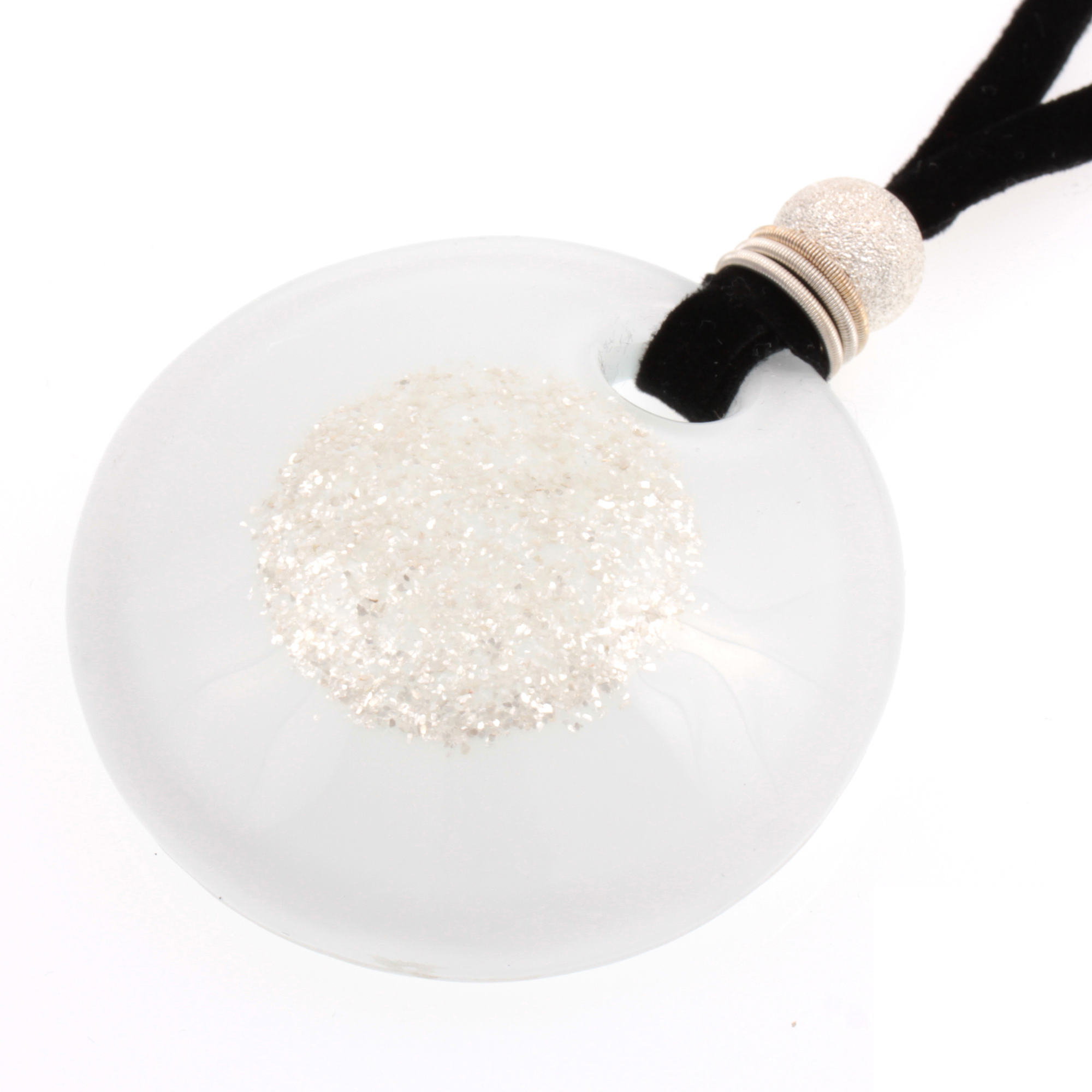 Zu diesem Anhänger liefern wir Ihnen komplett fertig montiert eine Alcantara-Kette mit einer Länge von 44cm zzgl einer 5 cm Verlängerung. Durch die große Öffnung haben Sie Alternativen bei der Kettenauswahl und können weitere Möglichkeiten ausprobieren. Eine große Kettenauswahl finden Sie in unserem Shop.