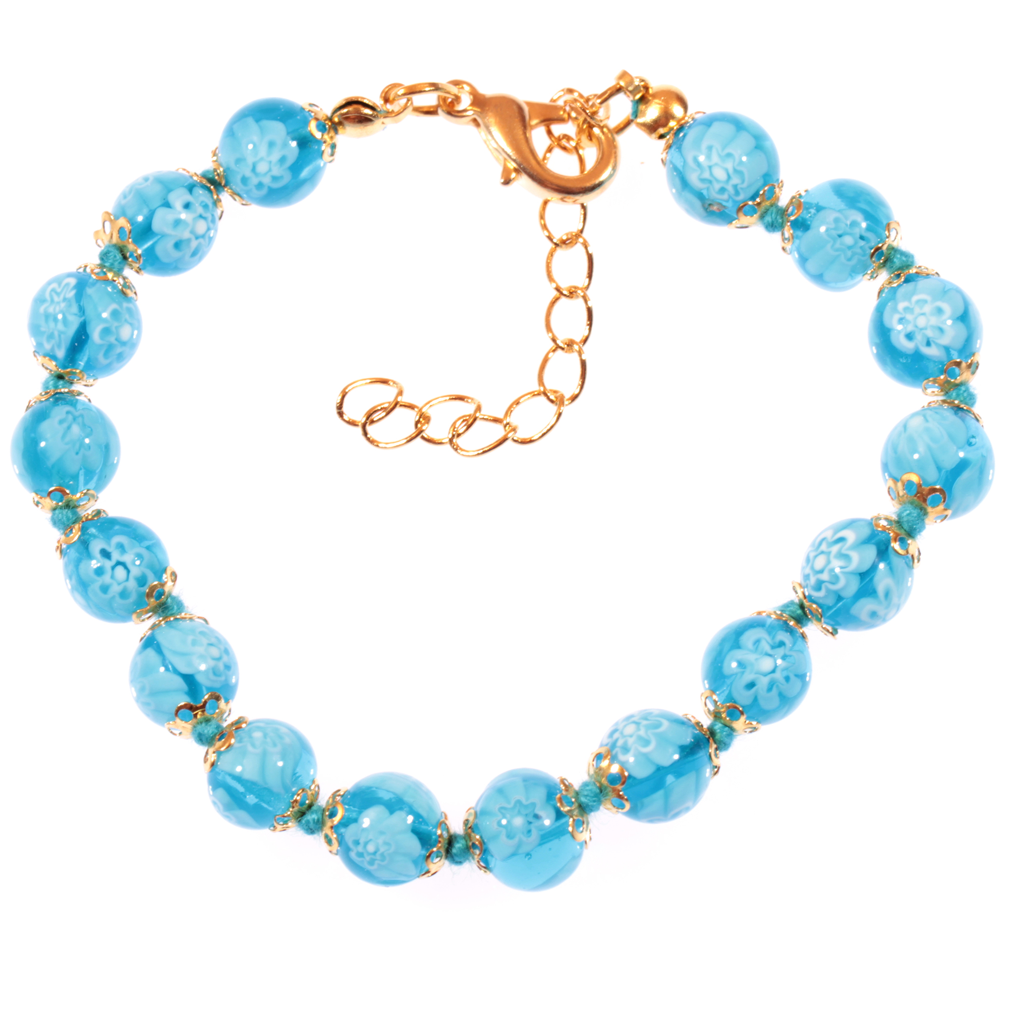 Murano Glas Armband "Mille Fiori" türkis