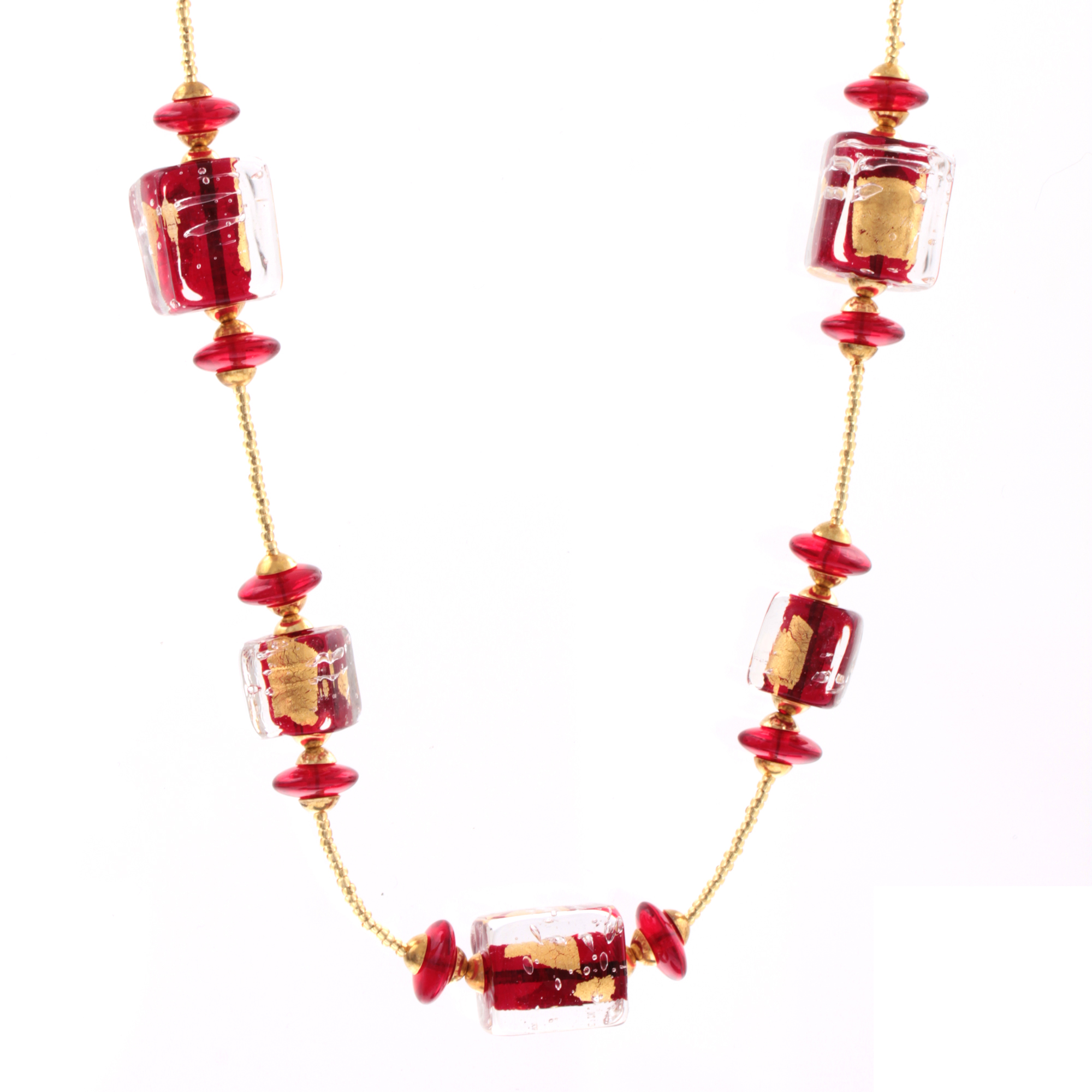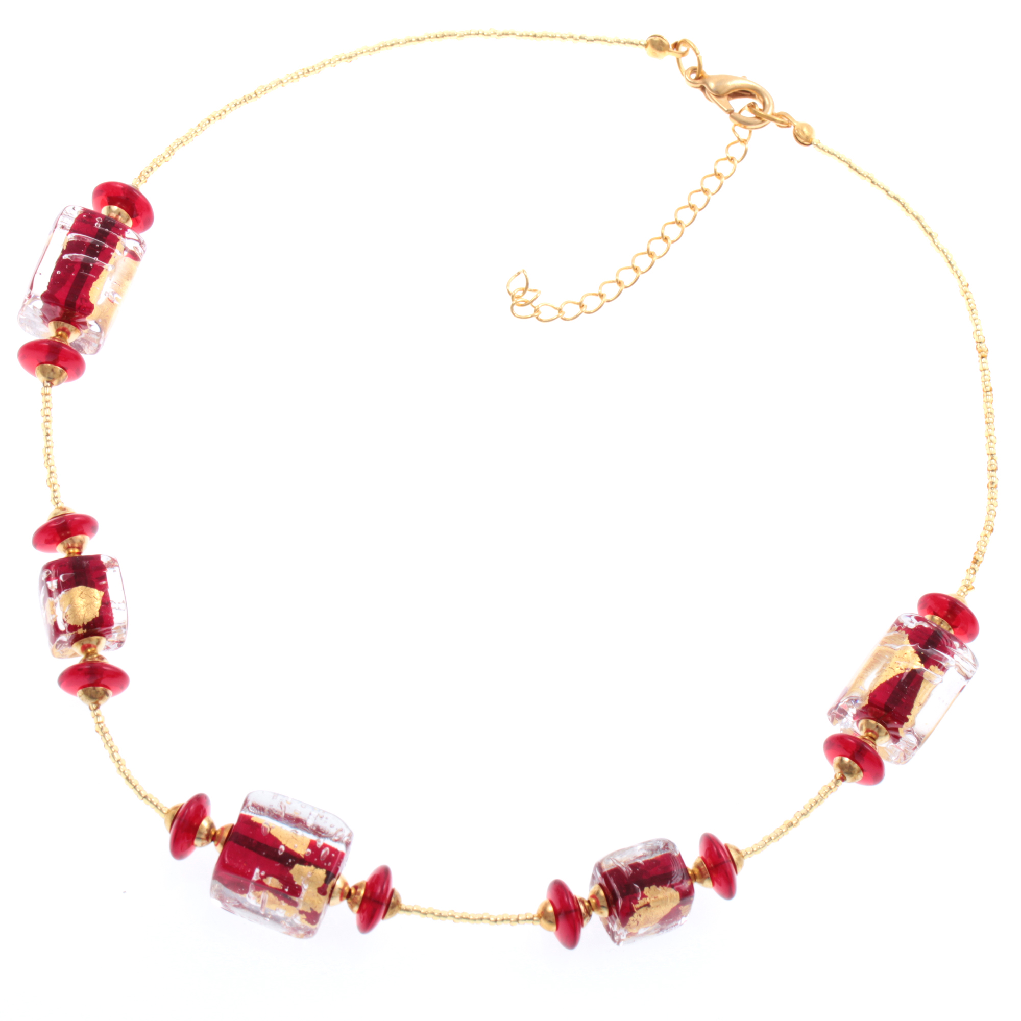Murano Glas Collier "Cintia" Halskette-rot-gold