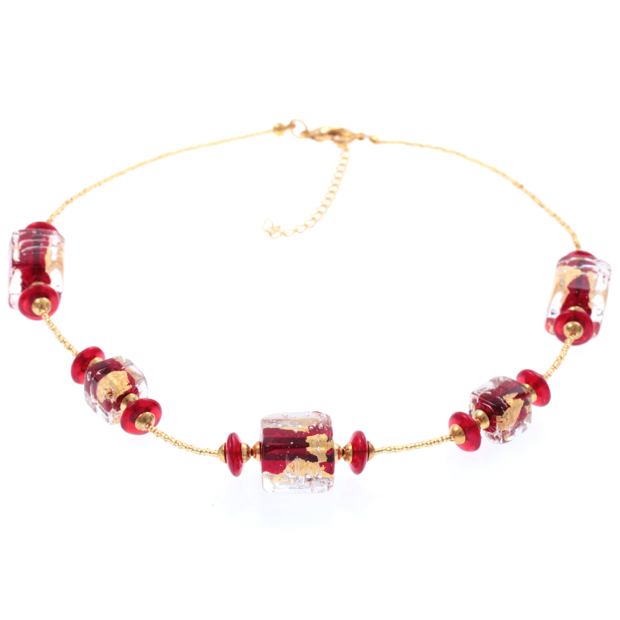 Produktinformationen "Murano Glas Collier "Cintia" Halskette-rot-gold"