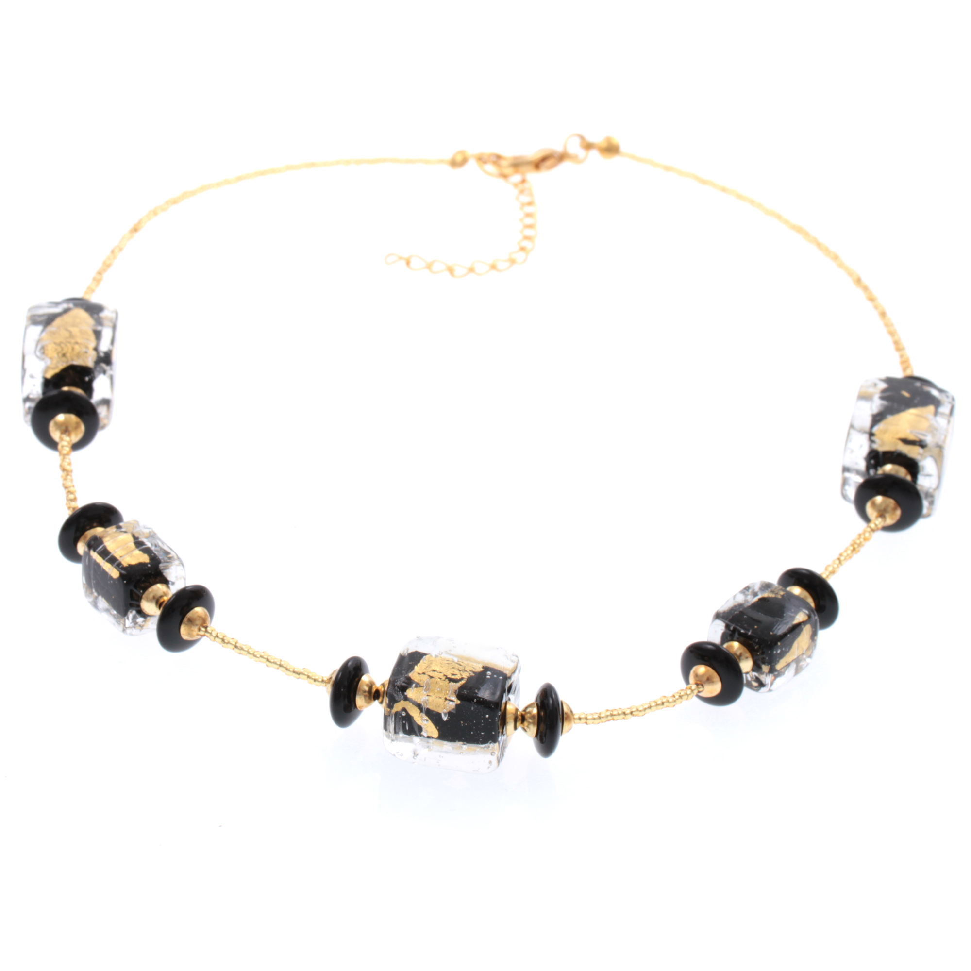 Produktinformationen "Murano Glas Collier "Cintia" Halskette-schwarz-gold"
