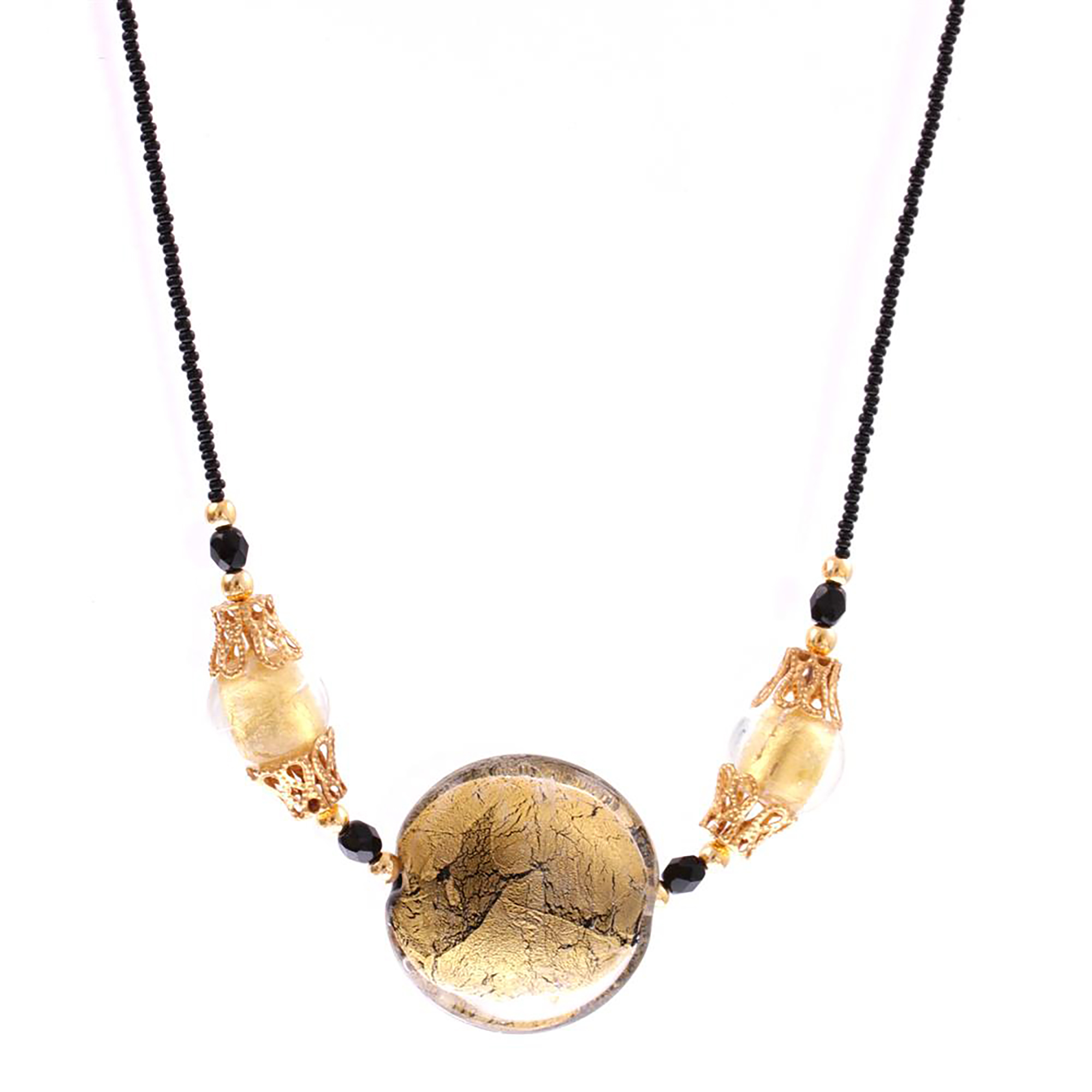 Produktinformationen "Murano Glas Collier "Emi" Halskette-schwarz-gold"