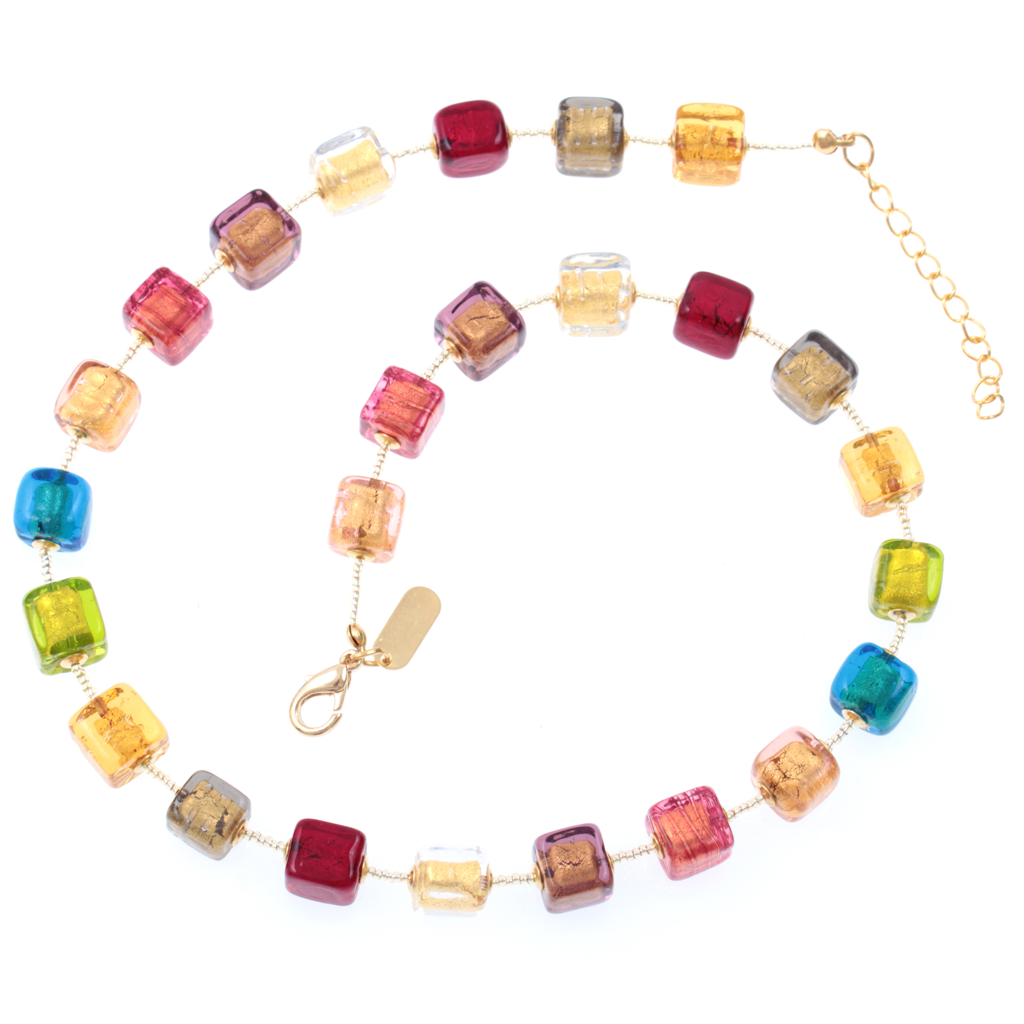 Produktinformationen "Murano Glas Collier "Quadro"-bunt-gold"