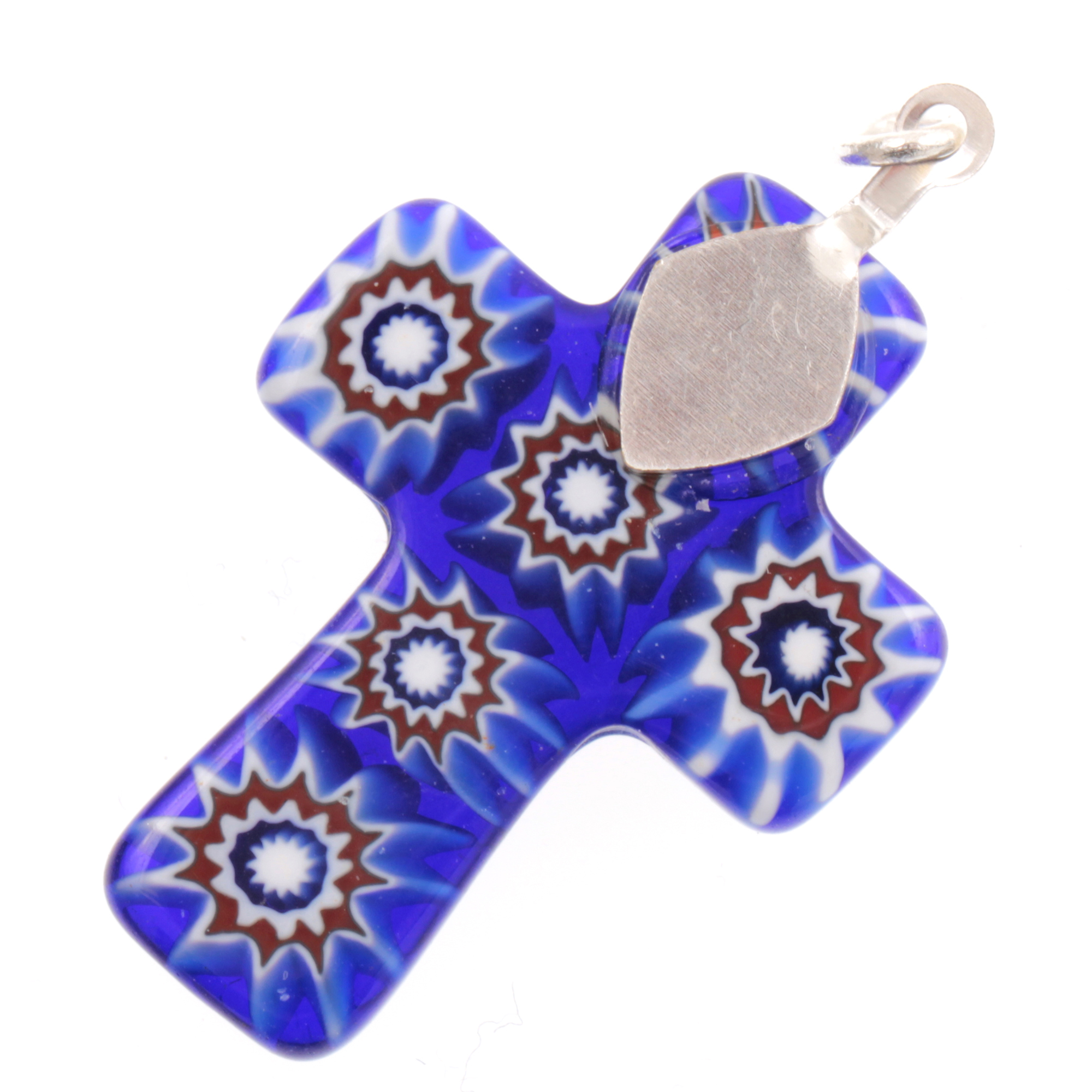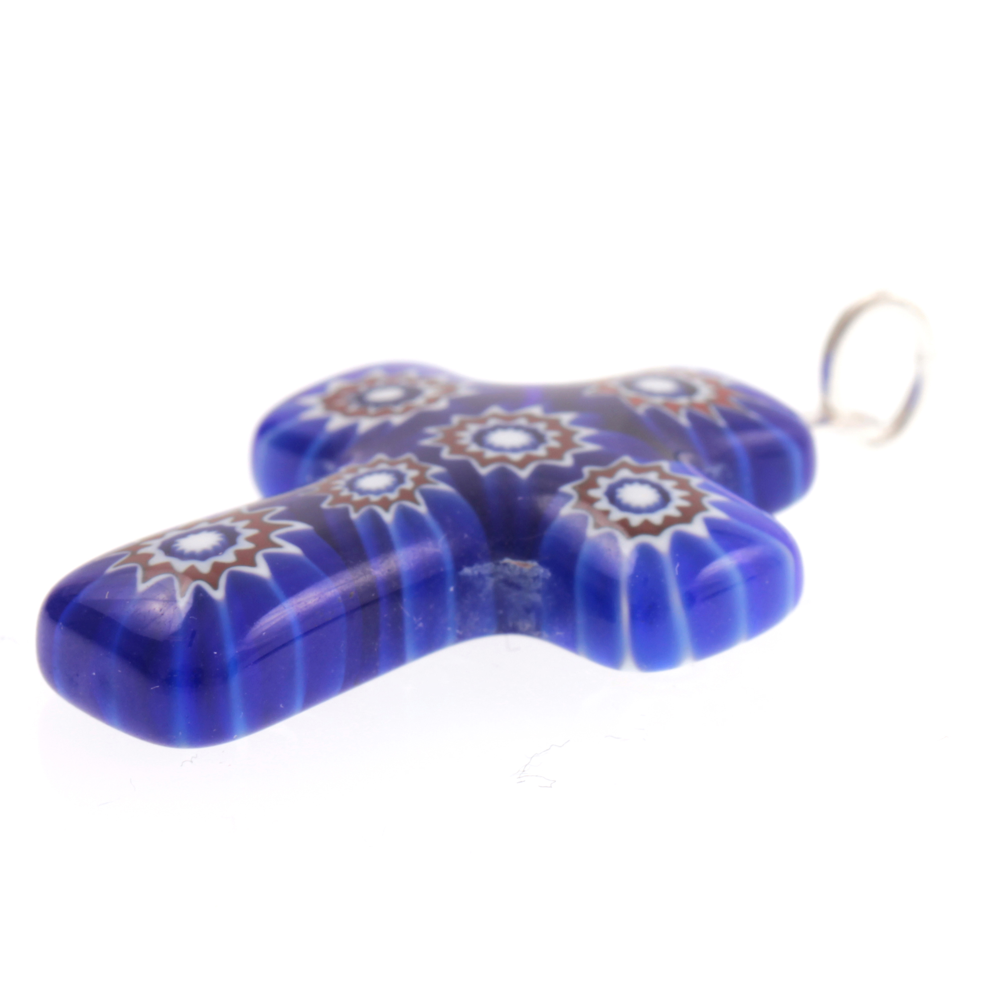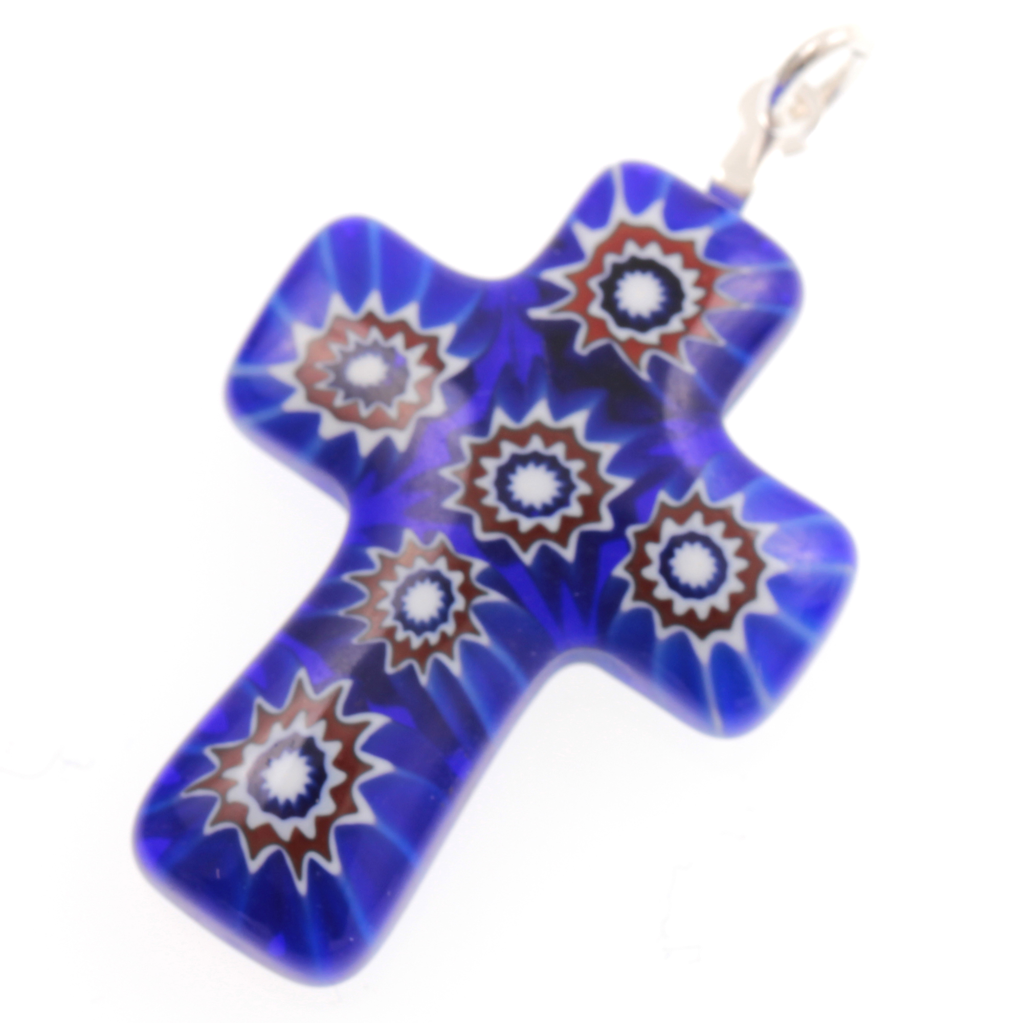 Produktinformationen "Murano Glas Kreuz Modell "Rood" Mille Fiori-dunkelblau"