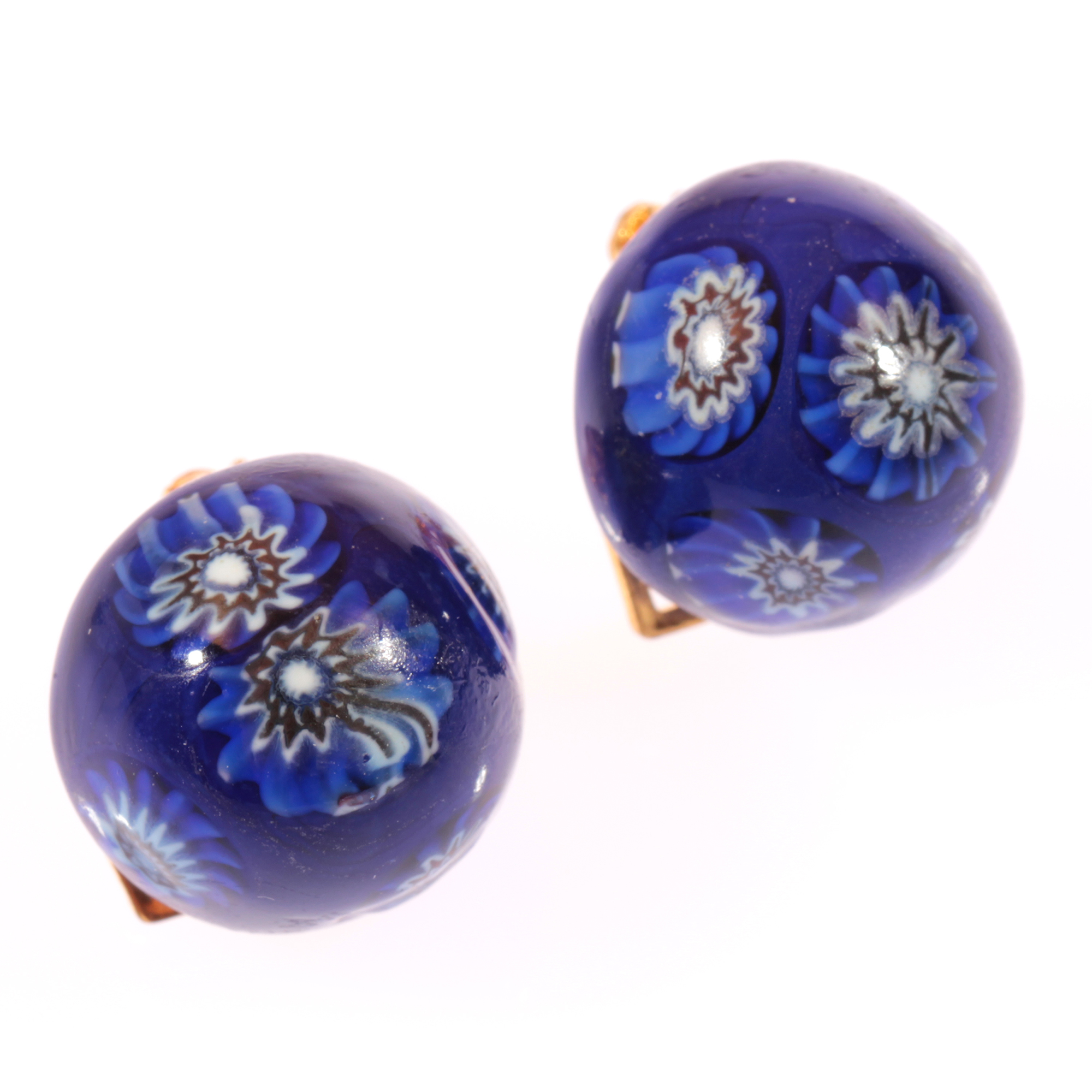 Produktinformationen "Murano Glas Ohrclip "Mille Fiori" dunkelblau"