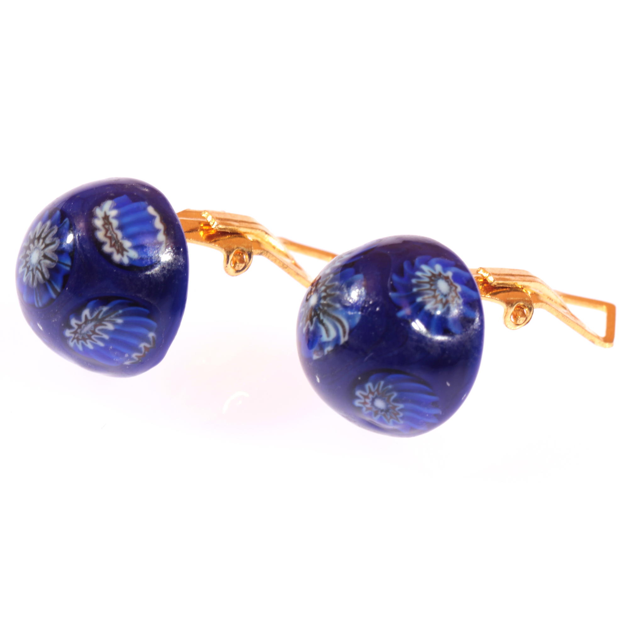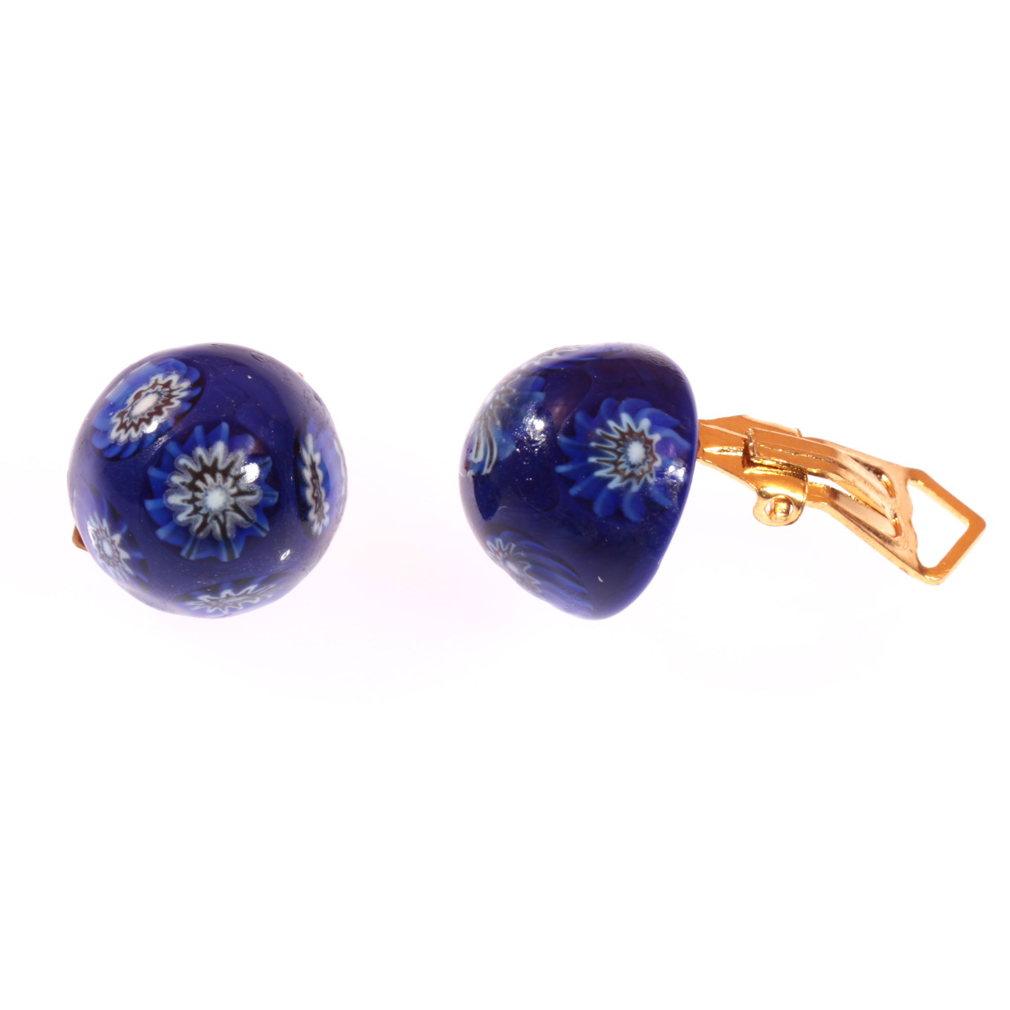 Murano Glas Ohrclip "Mille Fiori" dunkelblau