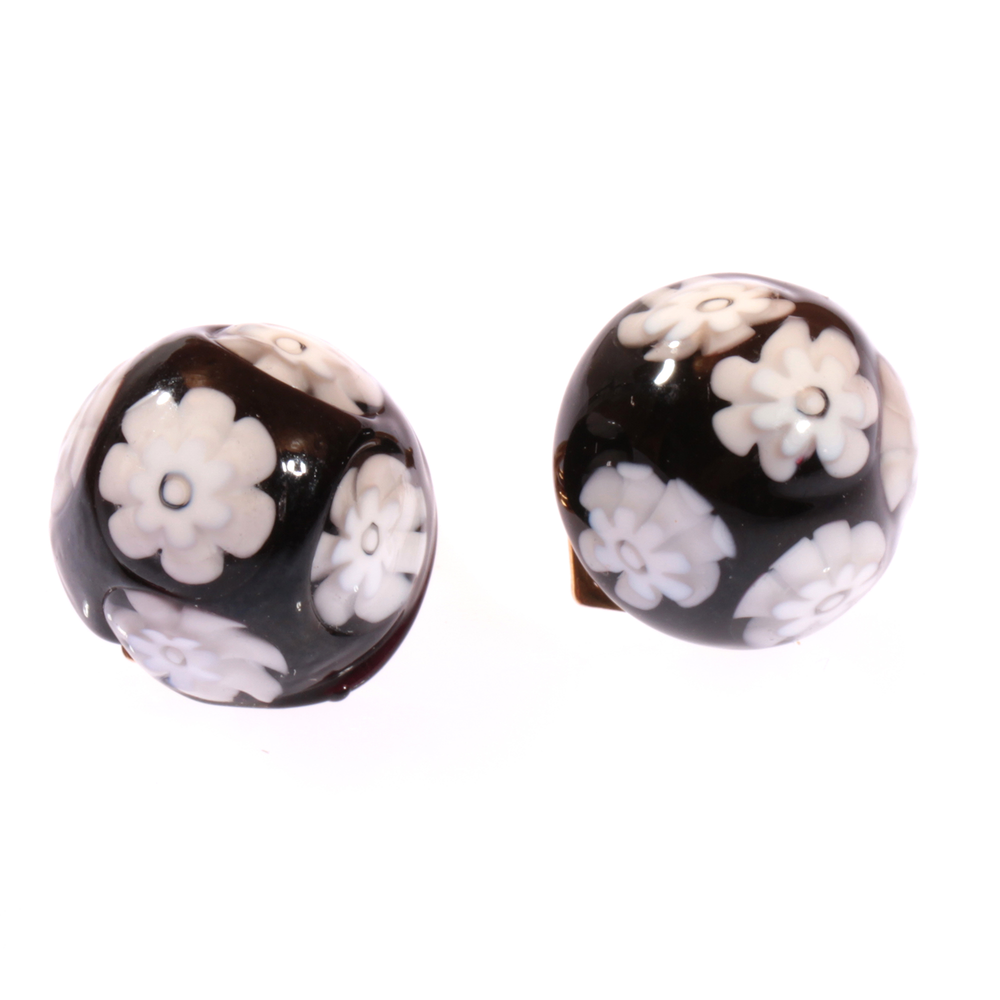 Murano Glas Ohrclip "Mille Fiori" schwarz-weiss