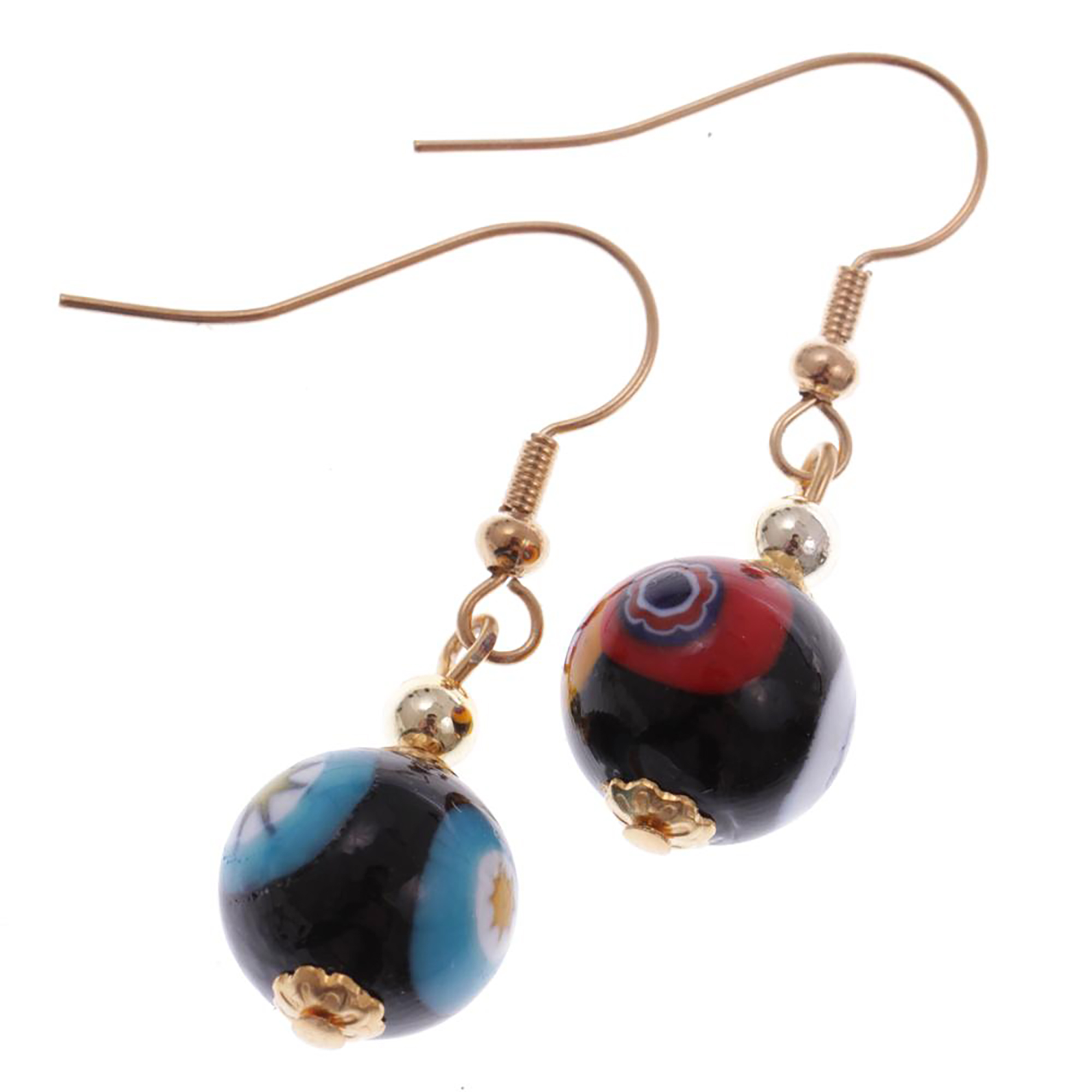 Produktinformationen "Murano Glas Ohrhaken "Black Mille Fiori 13" Ohrschmuck Ohrhänger-bunt-gold"