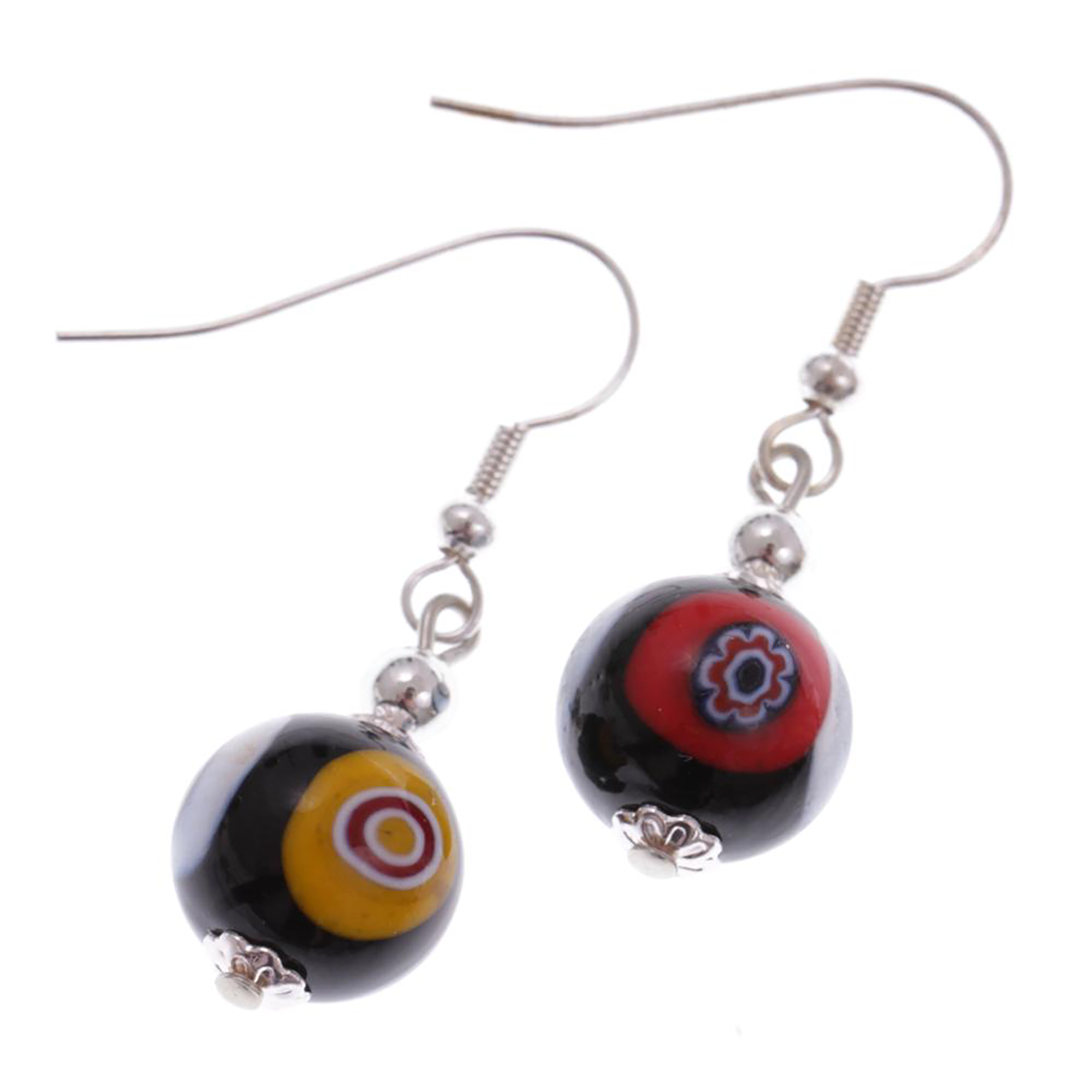 Produktinformationen "Murano Glas Ohrhaken "Black Mille Fiori 13" Ohrschmuck Ohrhänger-bunt-silber"