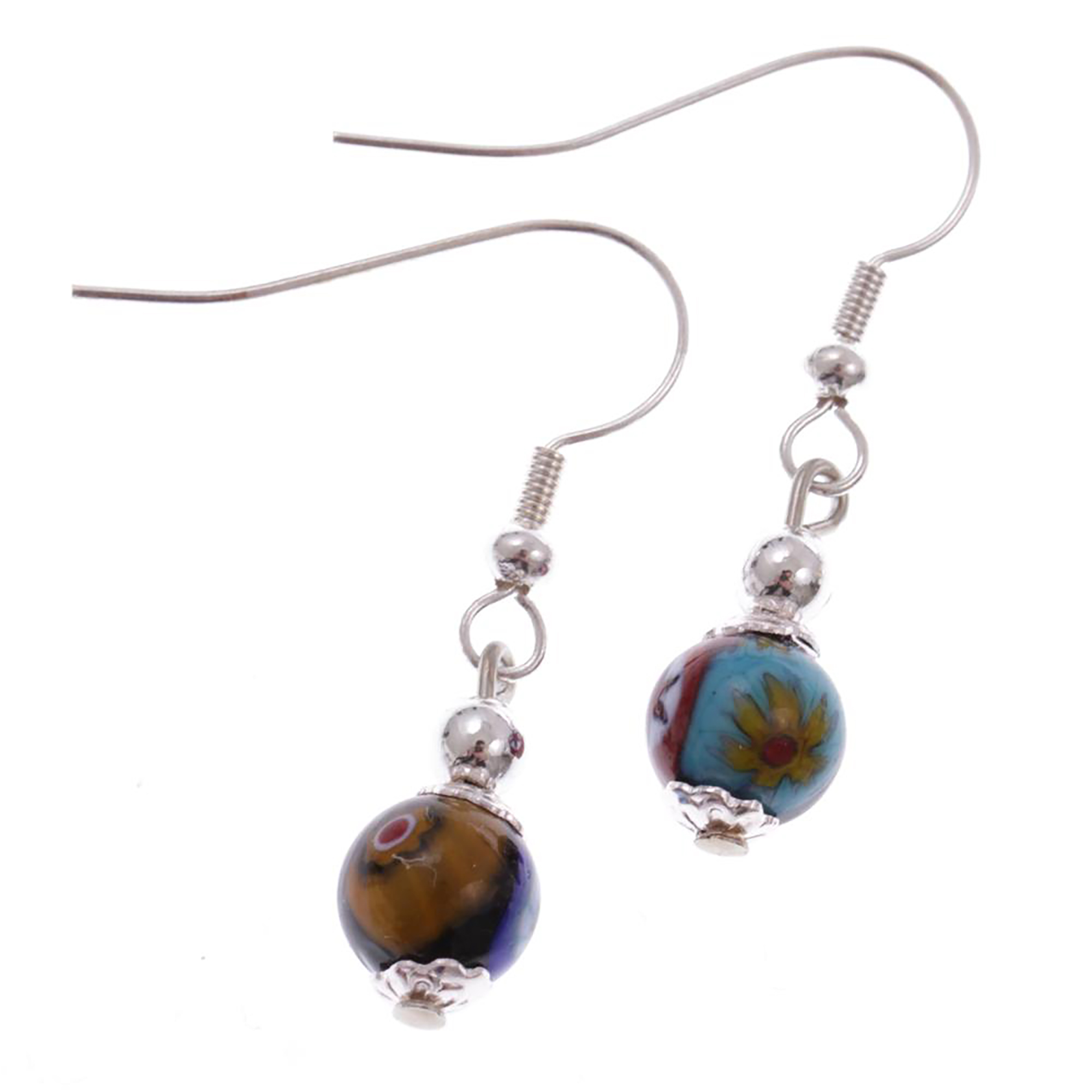 Produktinformationen "Murano Glas Ohrhaken "Black Mille Fiori 8" Ohrschmuck Ohrhänger-bunt-silber"