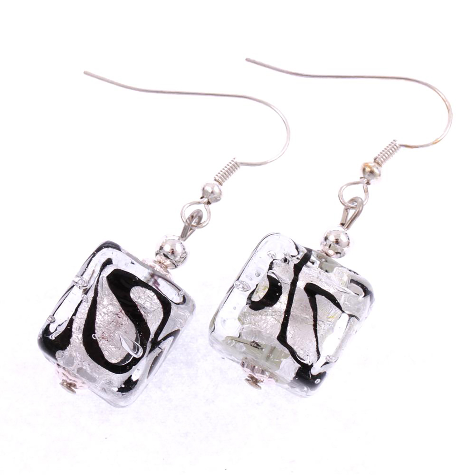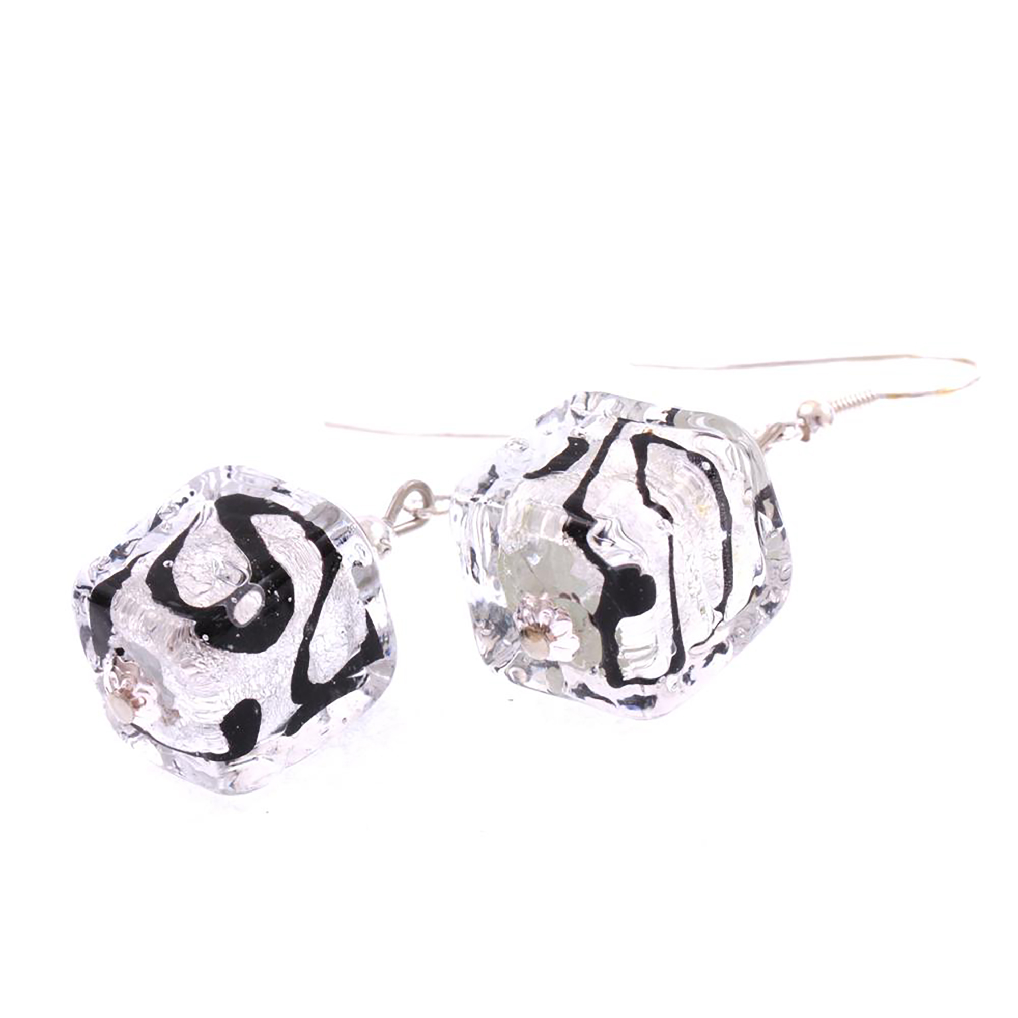 Murano Glas Ohrhaken "Indianapolis" Ohrschmuck -schwarz-silber
