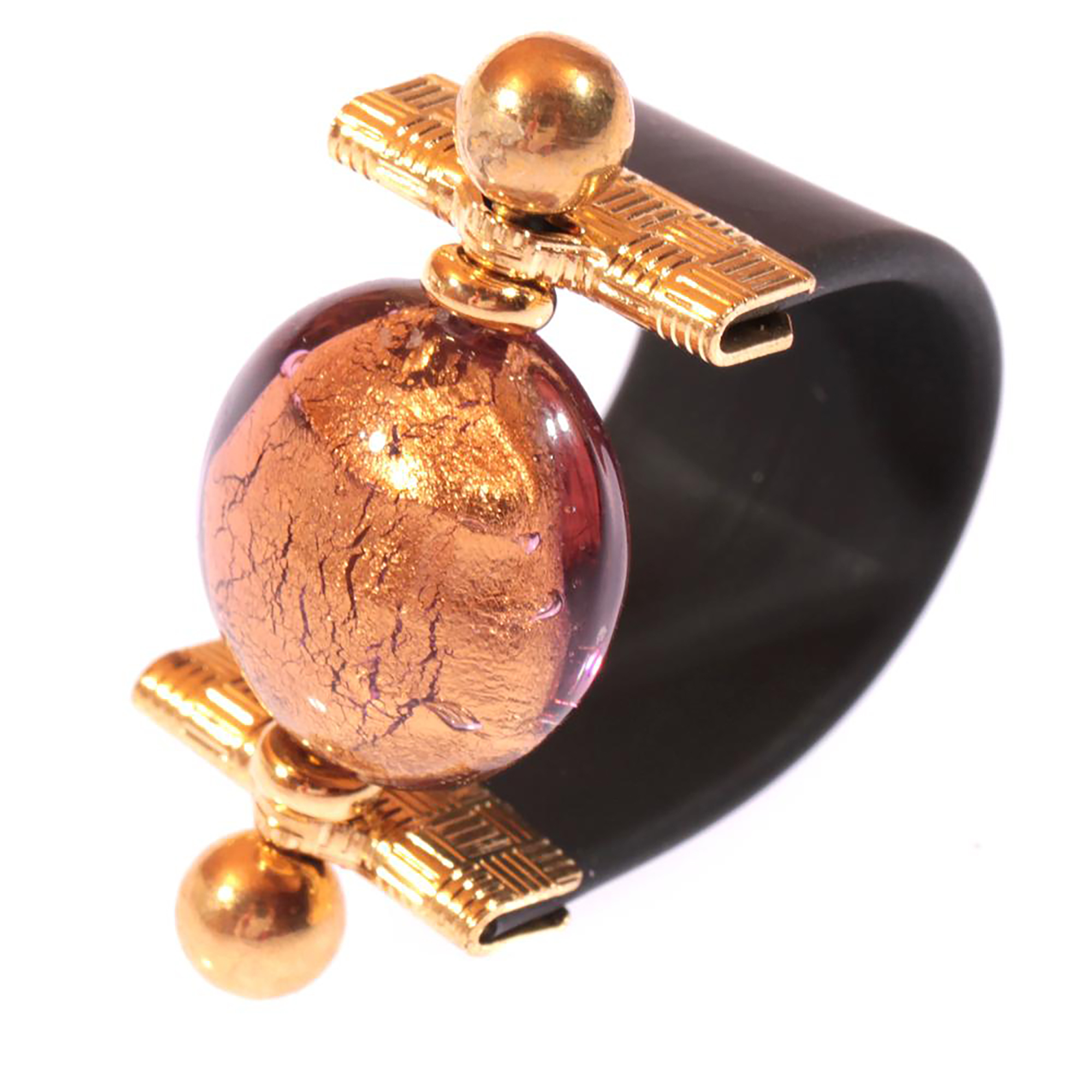 Muranoglas Ring "Ohio" schwarz-dark amethist