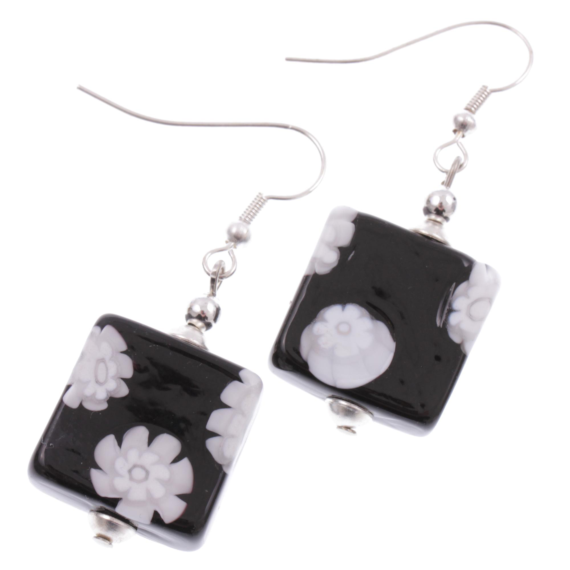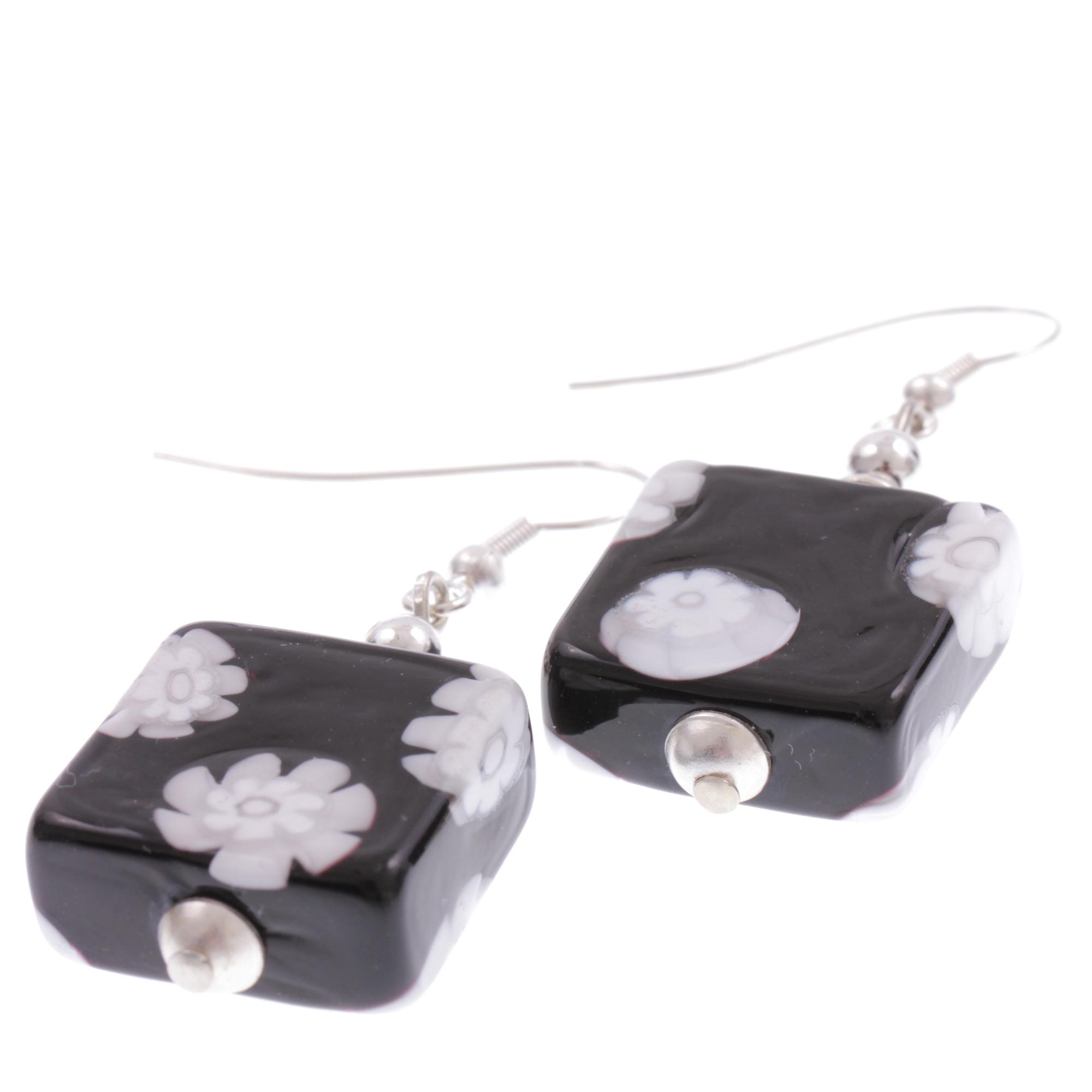 Produktinformationen "Ohrring Murano Glas "Melchior" Ohrschmuck-schwarz-weiss"