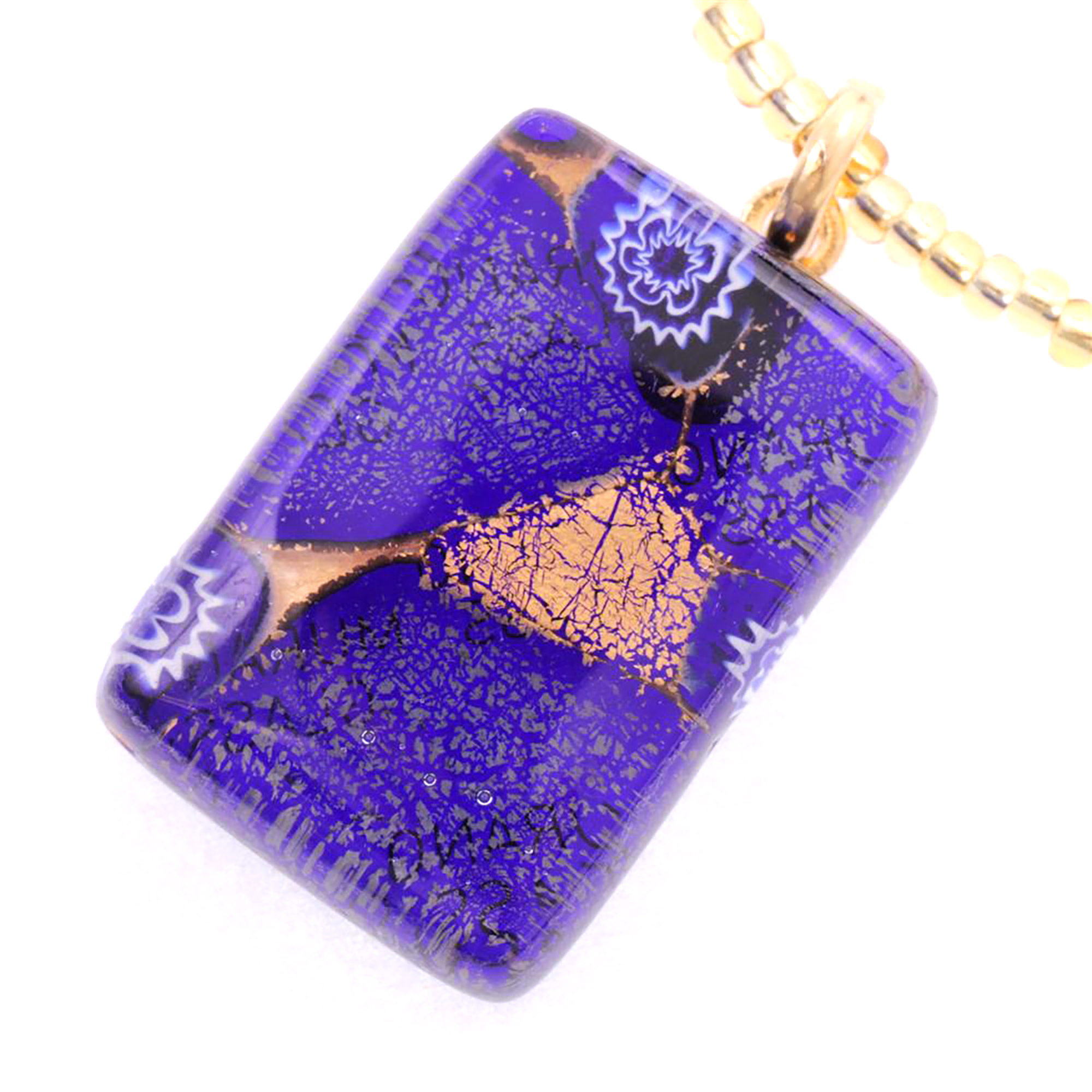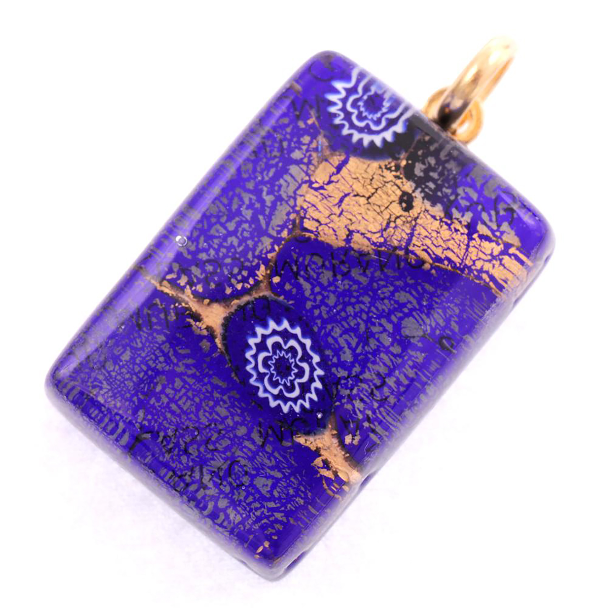 Rechteck Anhänger "Swan II" Murano Glas-blau-gold