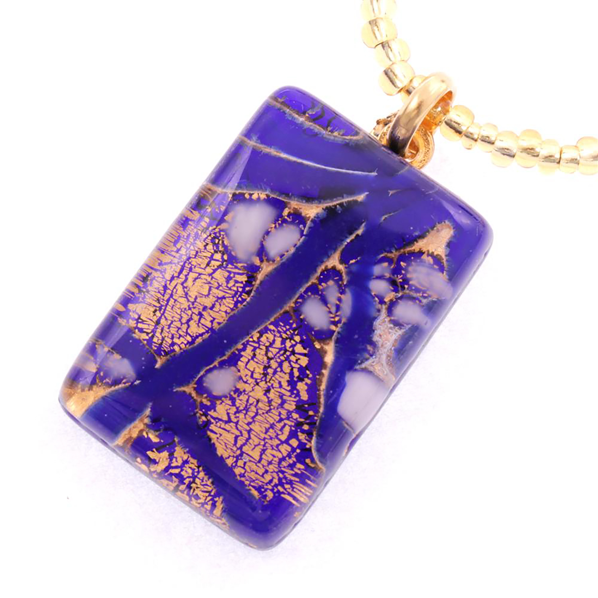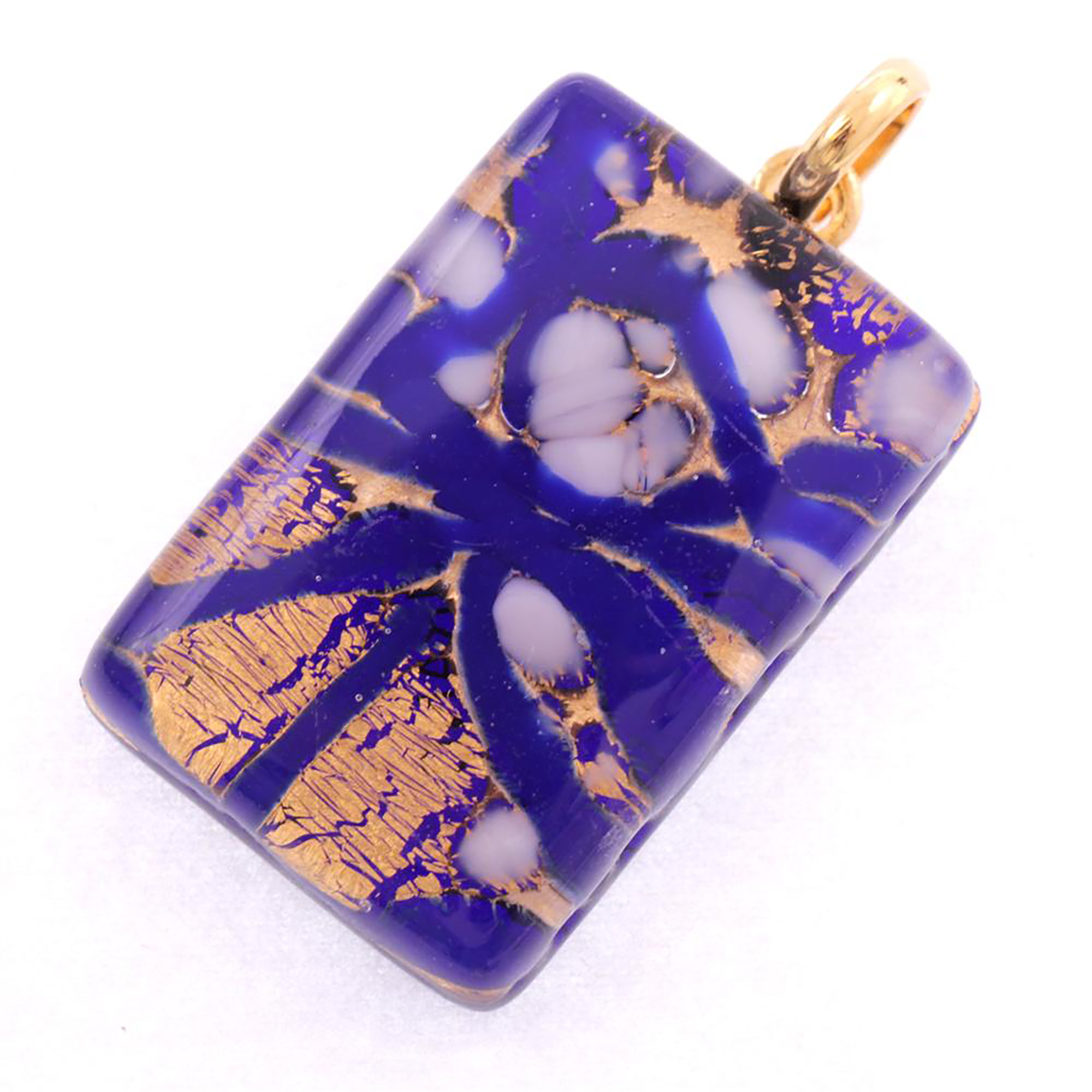 Produktinformationen "Rechteck Anhänger "Swan II" Murano Glas-gold-dunkelblau"