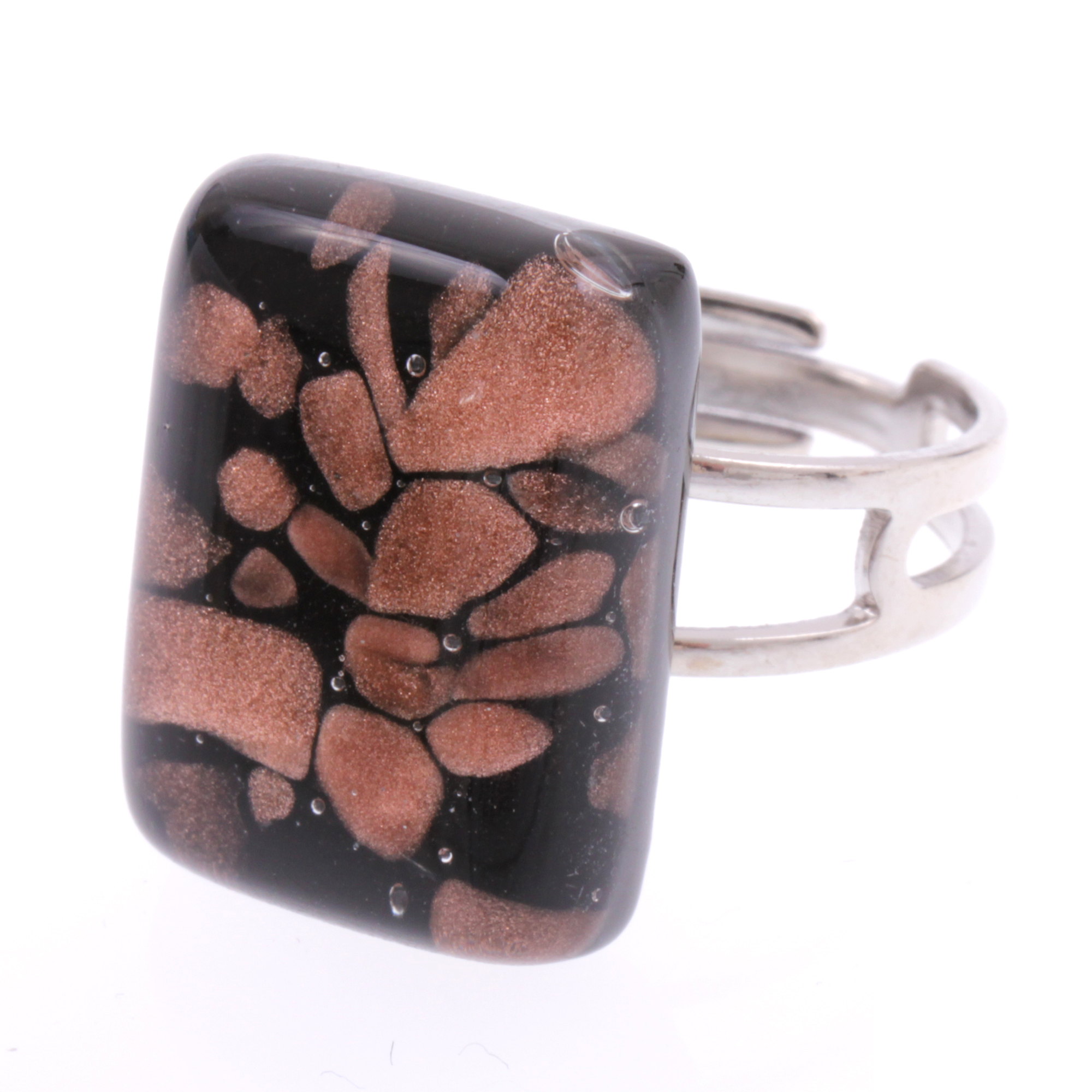 Wunderschöner Murano Glas Ring "Sinja" -schwarz-kupfer
