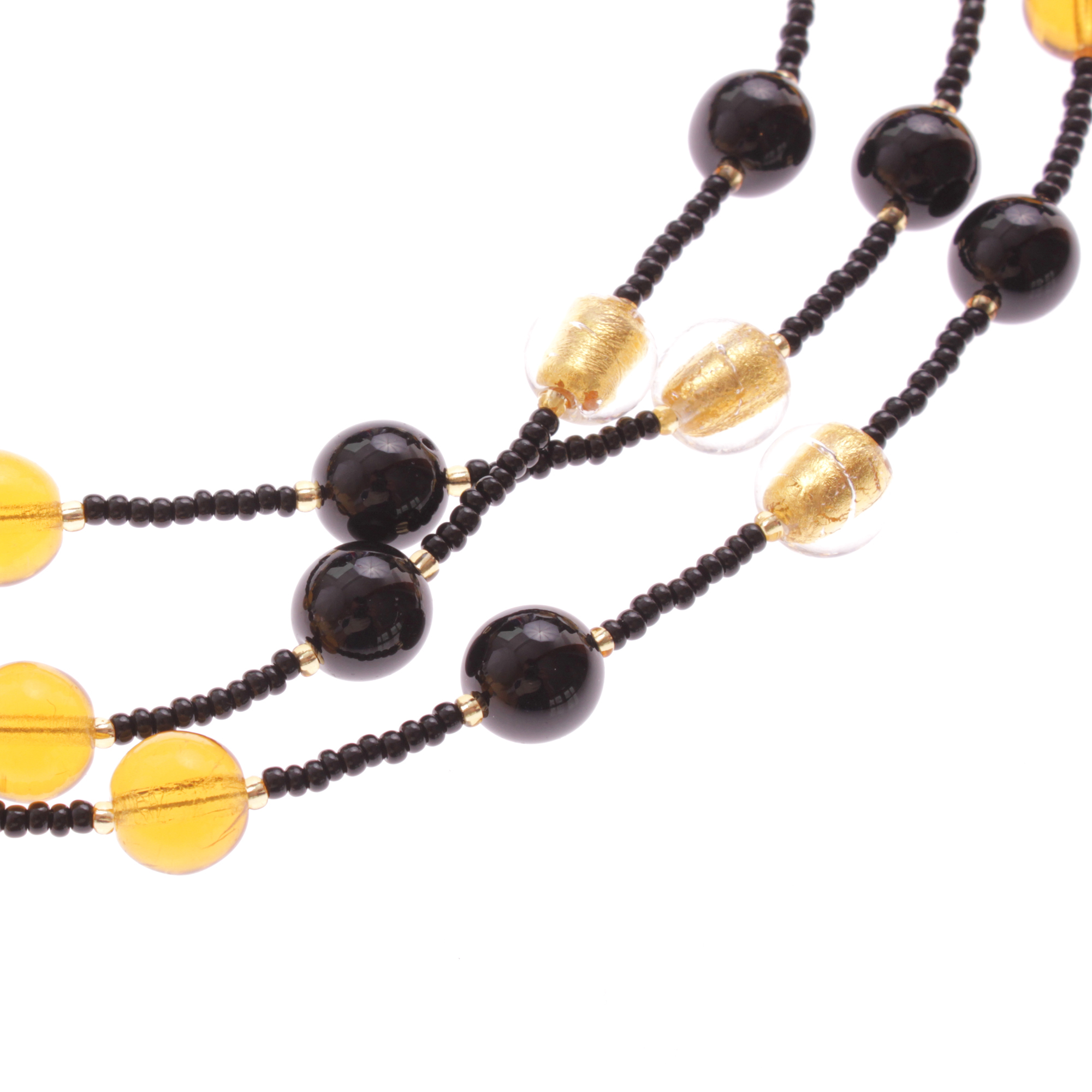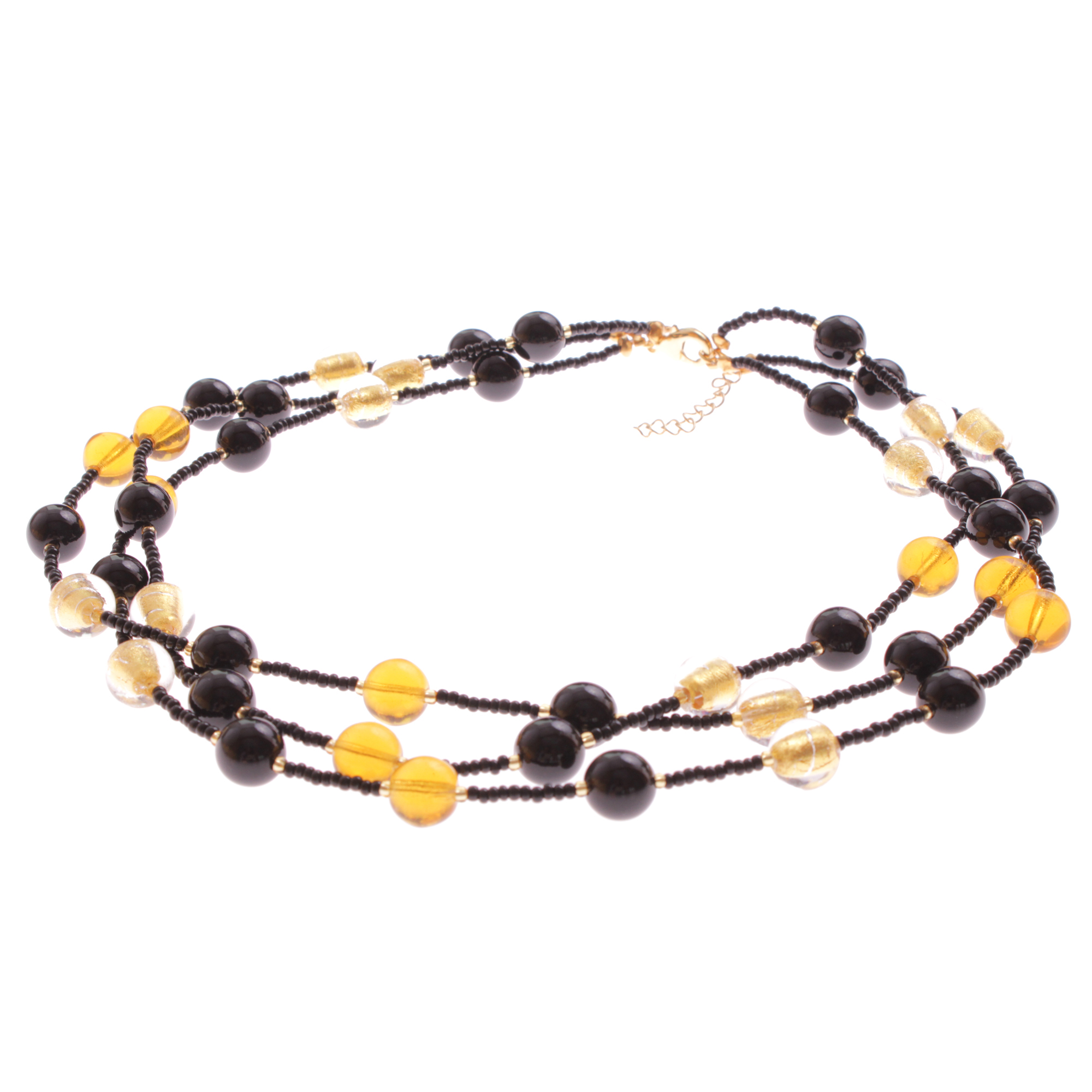 3 reihiges Murano Glas Collier "Rosalie" Halskette-schwarz-gold