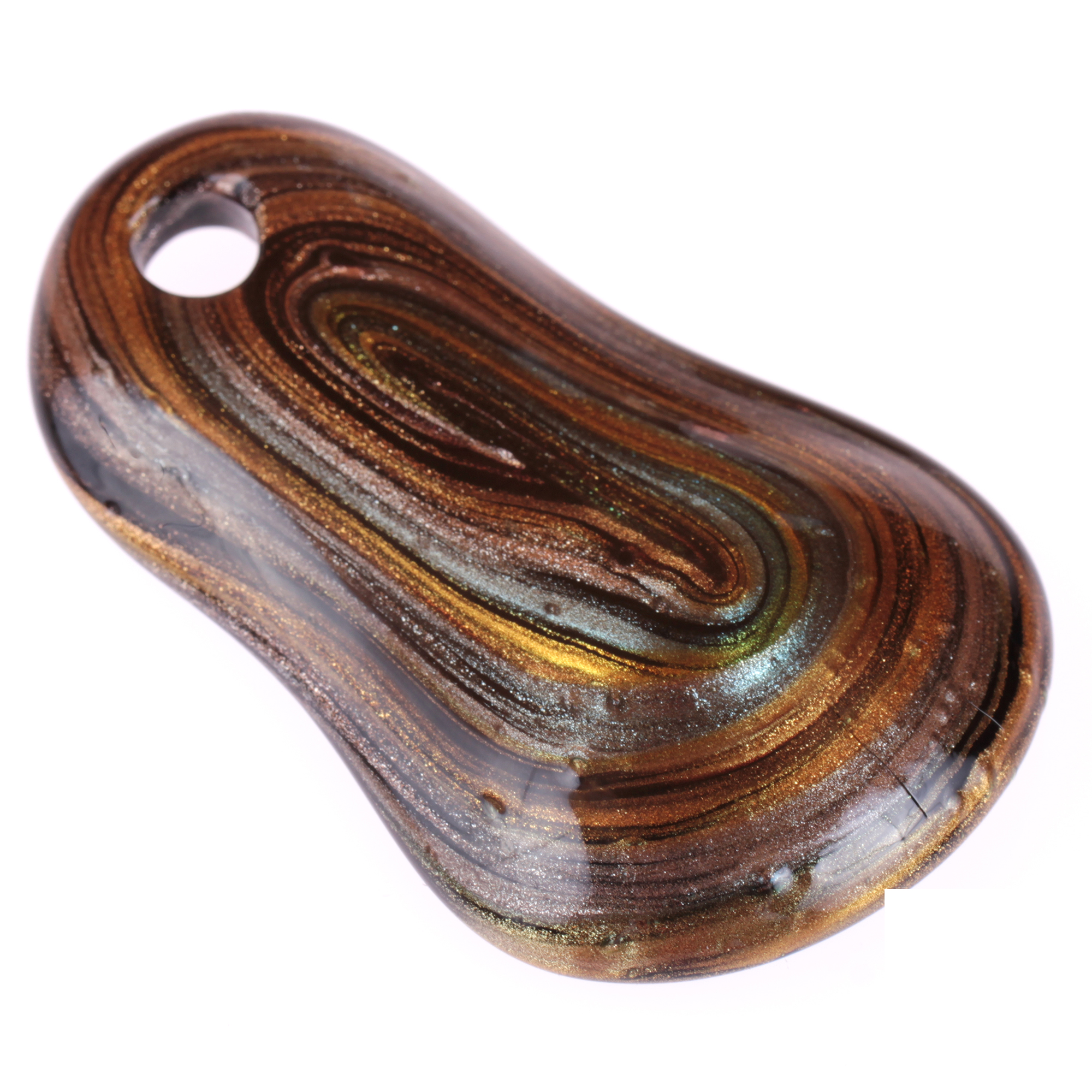 Geniessen Sie die neidvollen Blicke Ihrer Freundinnen. Man muss diesen Muranoglasanhänger nämlich immer wieder anschauen. Durch den Einschluss von Kupfer wurde diesem Meisterwerk der unverwechselbare Glanz verliehen. Sie haben hier die Möglichkeit das Schmuckstück mit diverse Ketten zu kombinieren. Geben Sie bei der Bestellung einfach mit an ob Sie eine Metallschlaufe möchten oder nicht. Verpackt in einer Geschenkbox und Begleitschreiben. "Made in Venice"