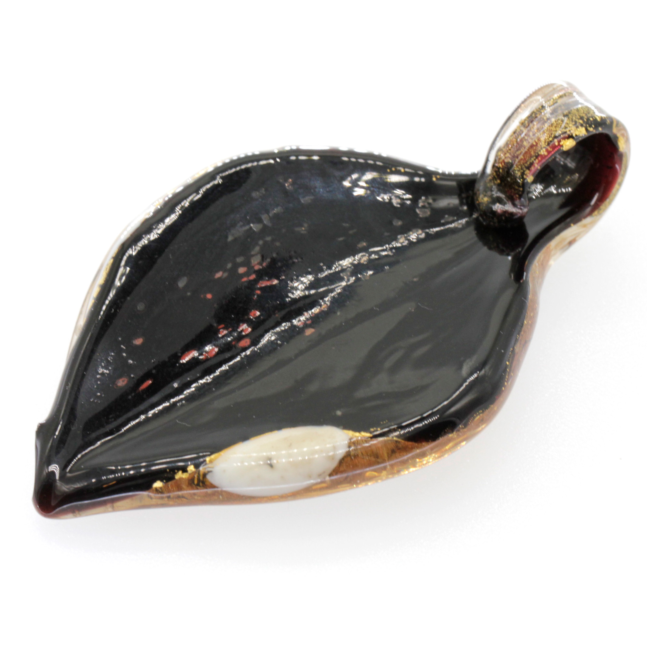 Murano Glas Blatt Anhänger "Beth" -schwarz gold