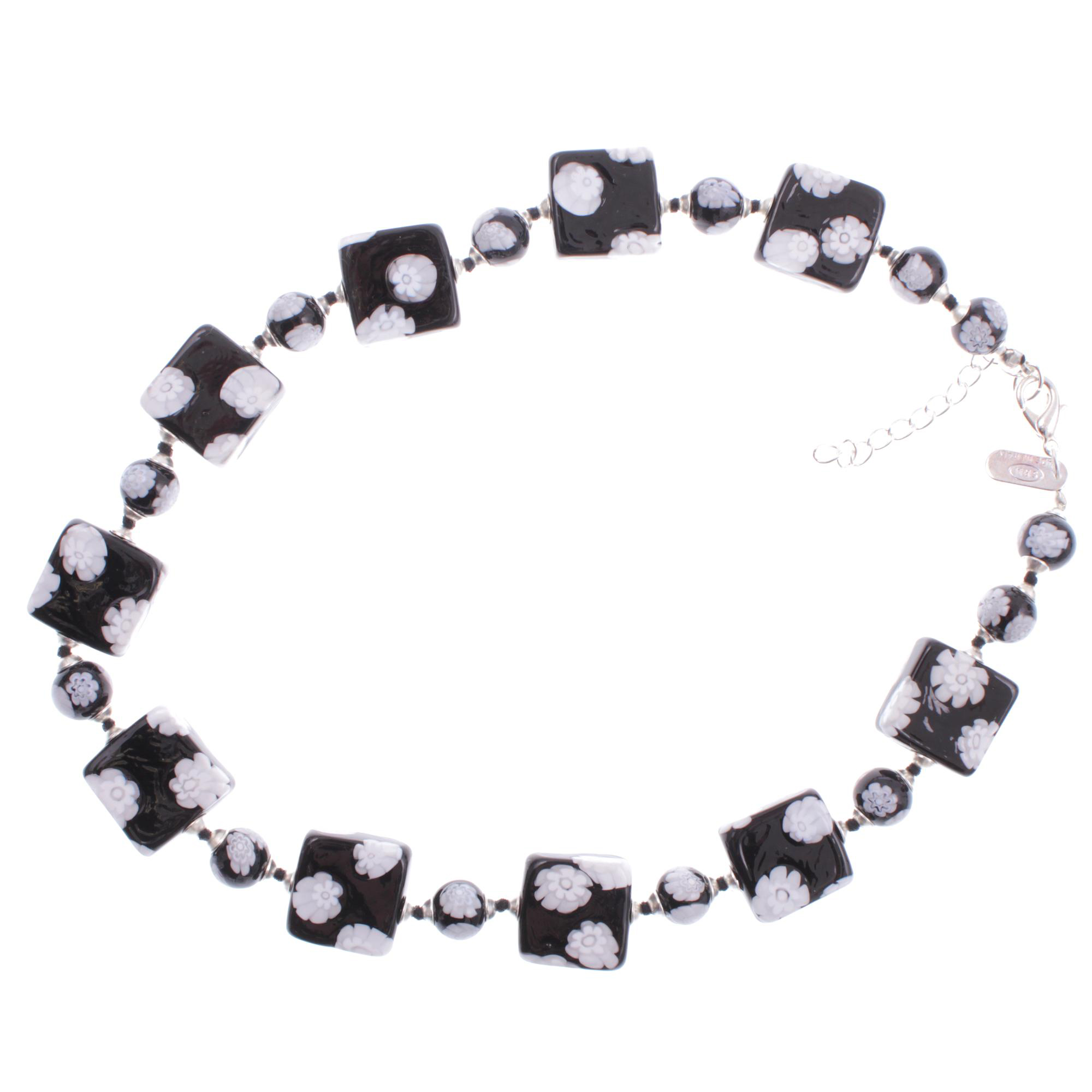 Produktinformationen "Murano Glas Collier "Melchior " Halskette-schwarz-weiss"