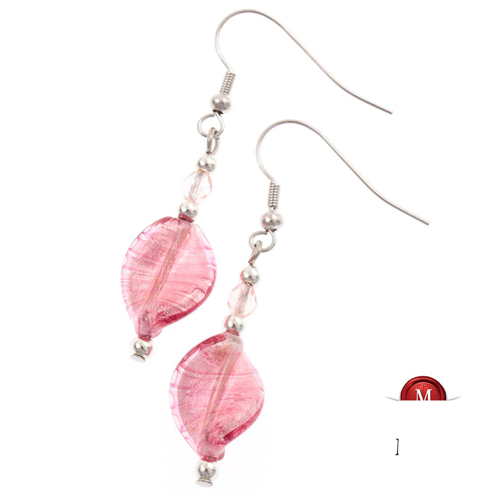 Murano Glas Ohrhaken "Federica" Ohrhänger-rosa-silber