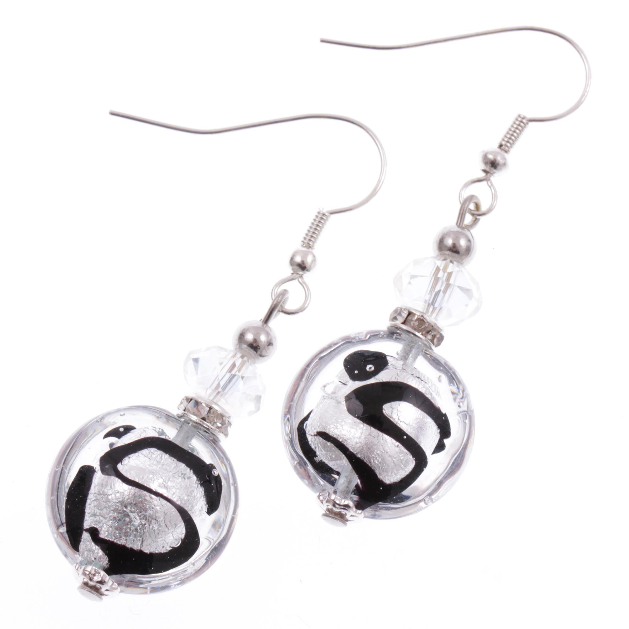Murano Glas Ohrschmuck "Iowa Deluxe" Ohrhaken-schwarz-silber