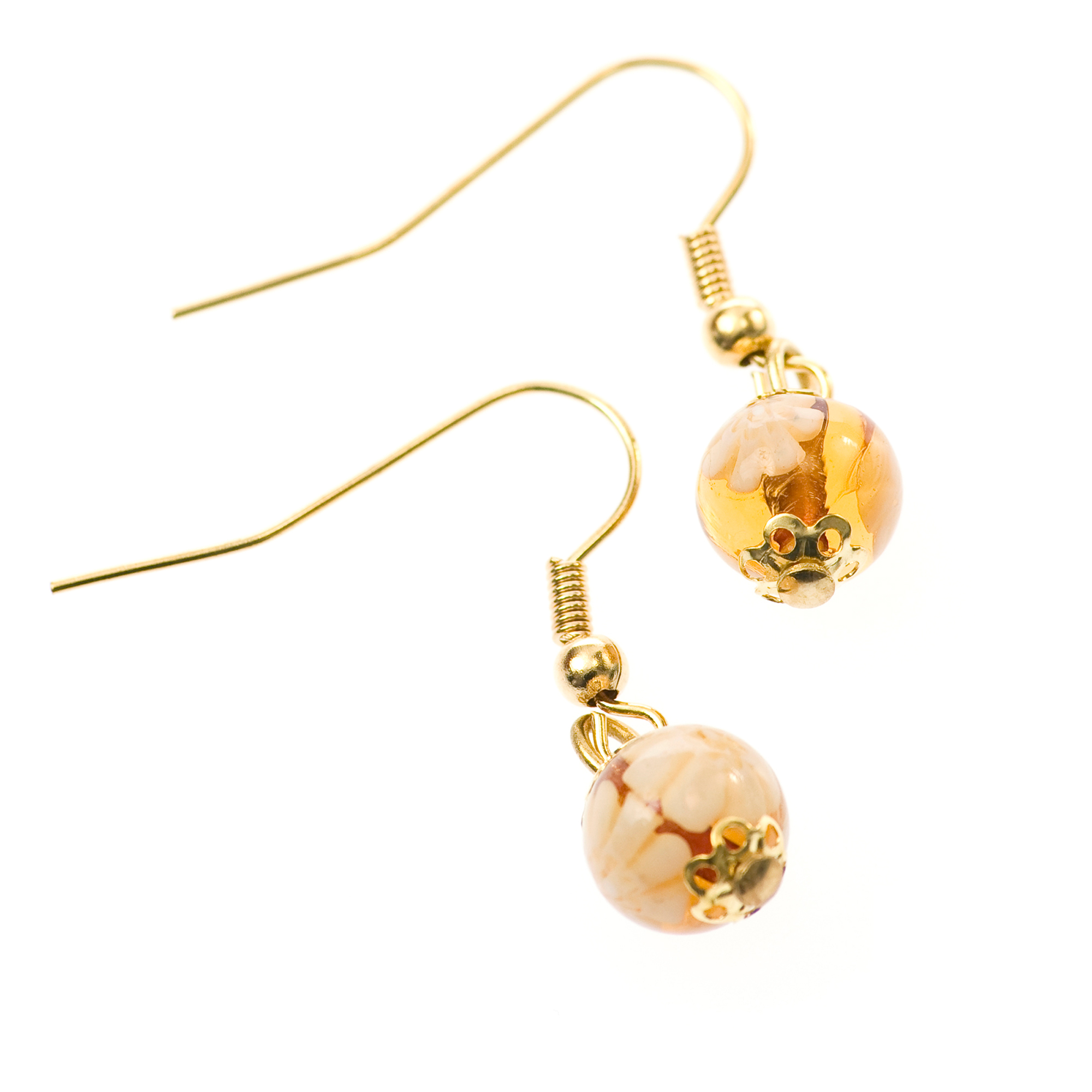 Ohrhaken aus Murano Glas "Mille Fiori" amber
